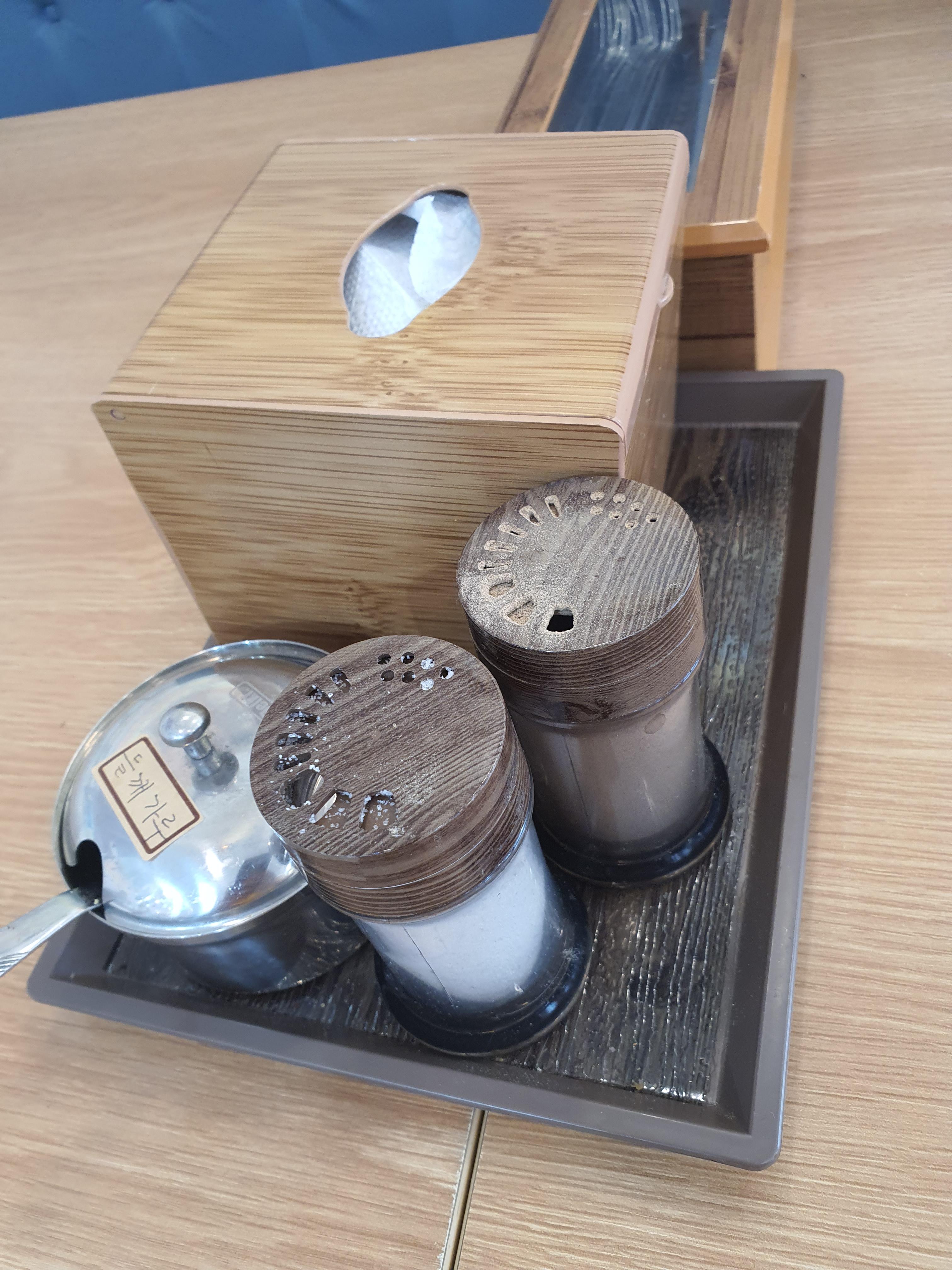 테이블 마다 후추가루와 소금, 들깨가루가 세팅되어 있습니다.