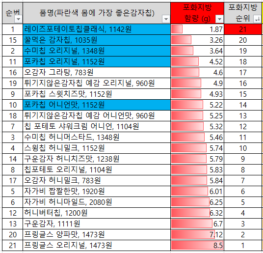 *감자칩 포화지방 많이 든 스낵 순위