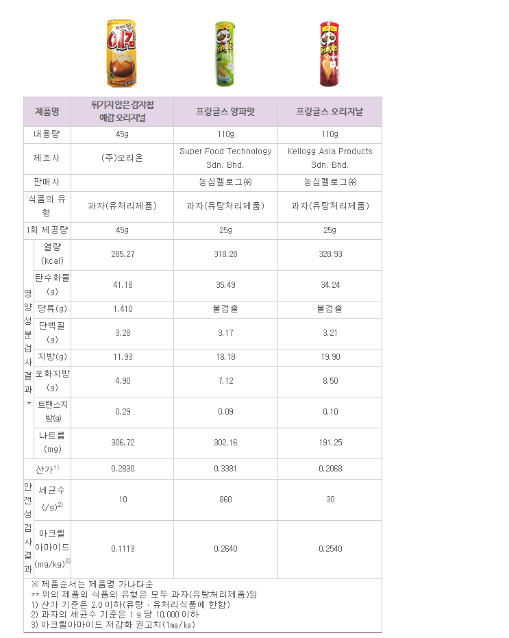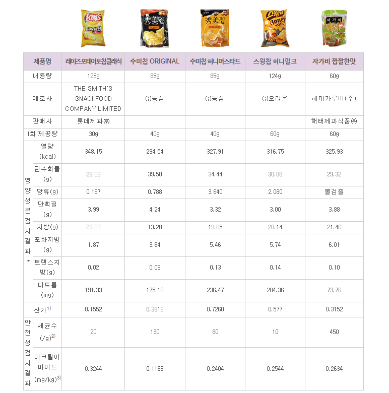 근데.. 우리나라에 판매중인 감자칩 종류중에서 가장 건강한 감자칩은 어떤걸까?