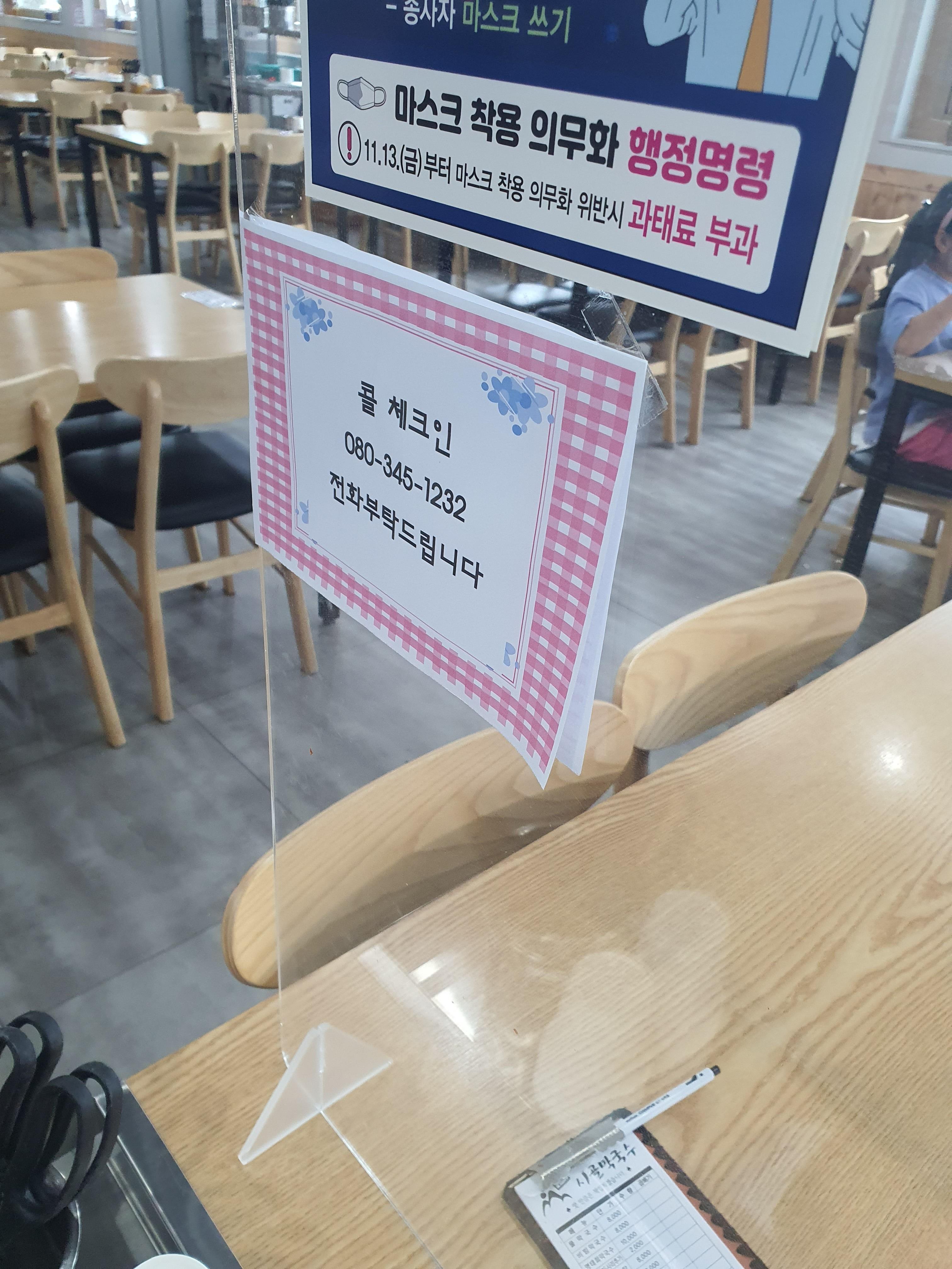 여기 역시 QR코드로 방문자 출입기록을 하지 않고, 전화를 이용해서 하네요! 정말 편합니다.
