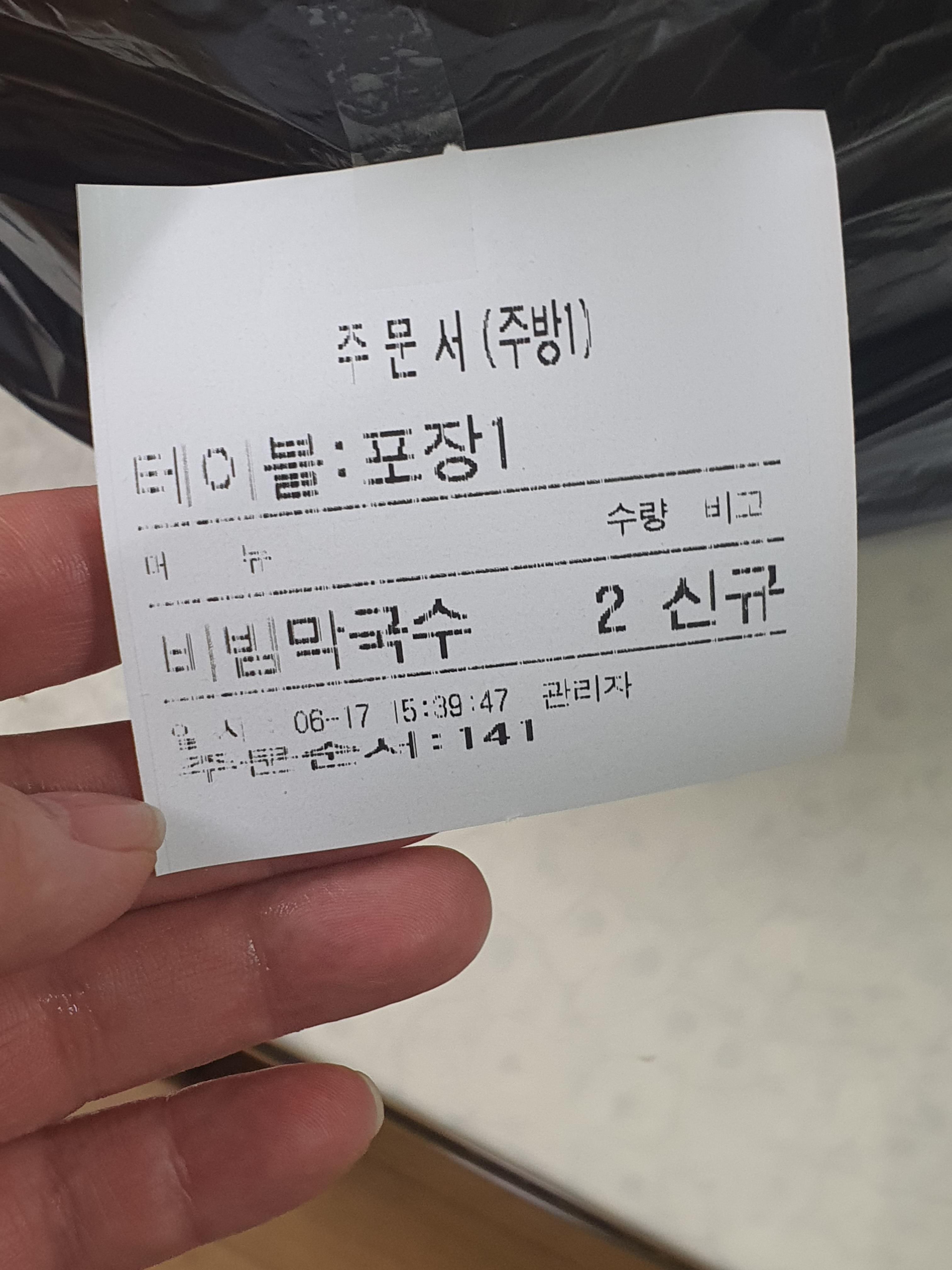 전화로 비빔막국수 2개와 시원한 육수를 조금 달라고 요청드리니,