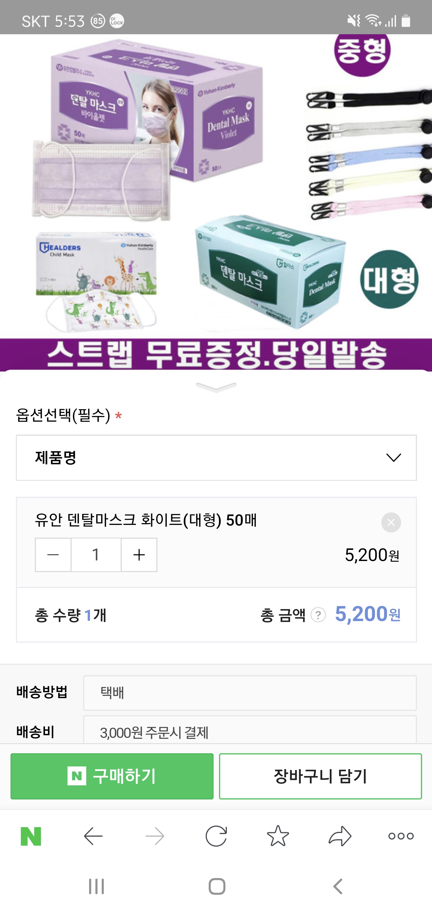 가성비 좋은 유한덴탈마스크를 구매했어요.