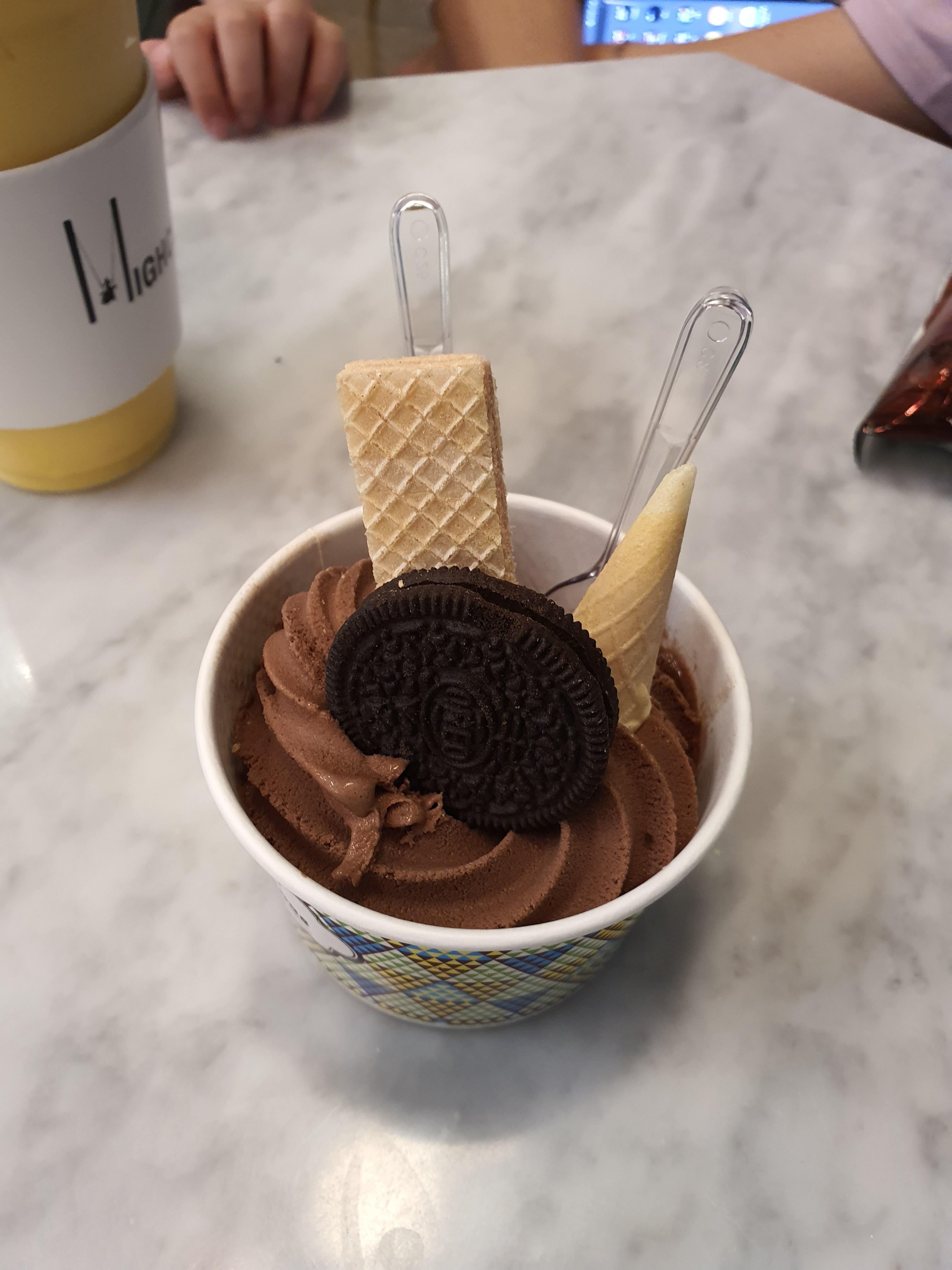 초코 젤라또 1개랑 망고스무디를 시켰습니다.