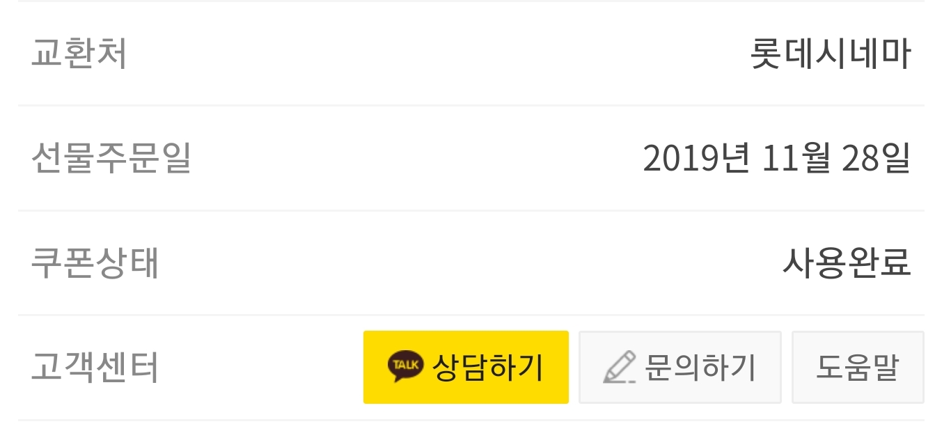 카톡선물 롯데시네마 금액권 유효기간이 만료되서..