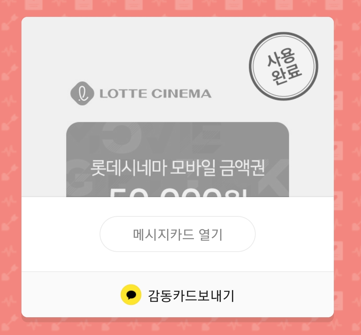롯데시네마 모바일 금액권을 선물을 받았었습니다.