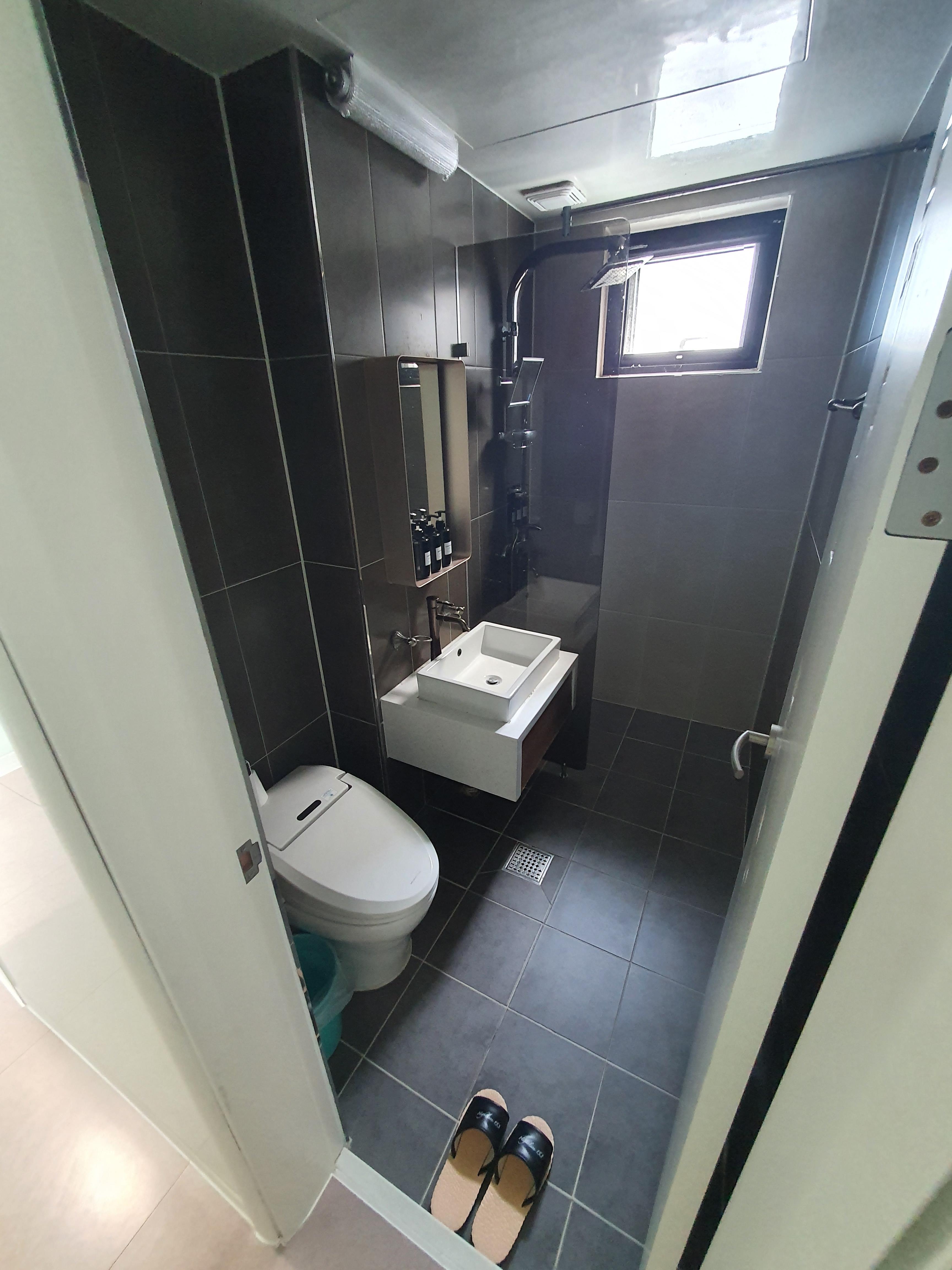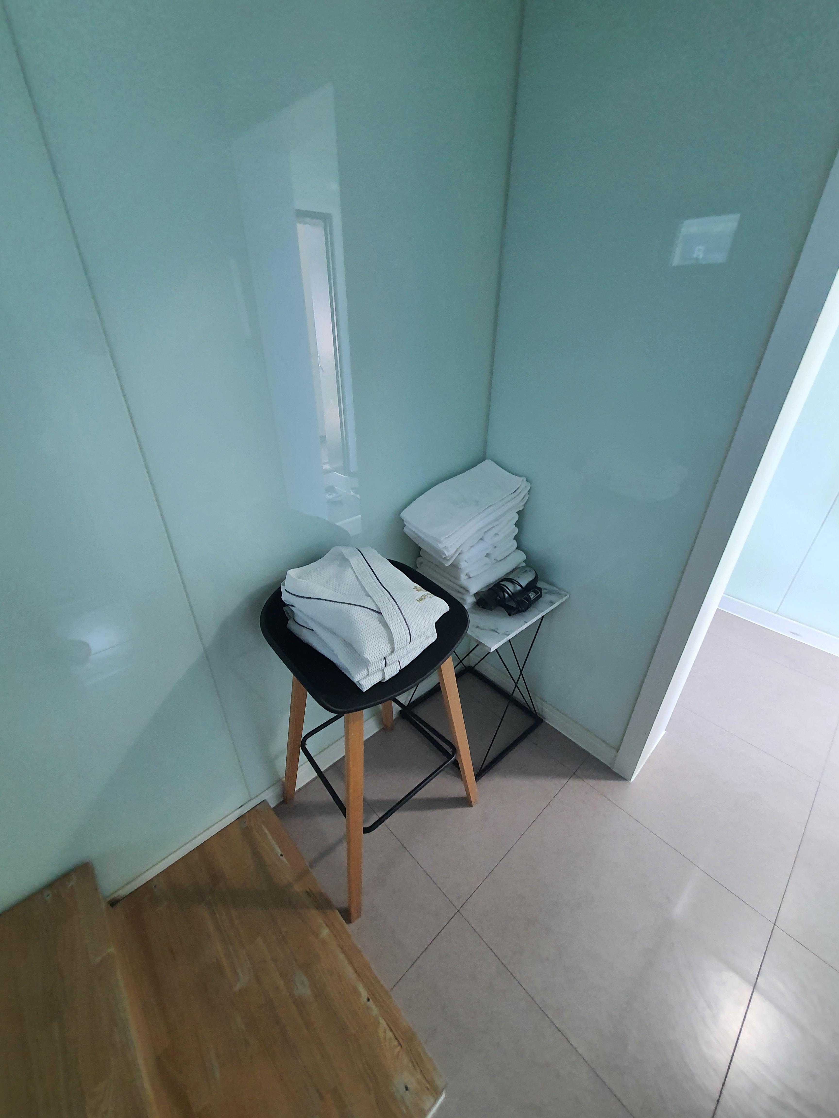 화장실은 샤워 부스가 있고 당연 비데도 설치되어 있습니다. 화장실 창문은 입구 옆에 있기 때문에.. 열지 않으시는게 맞을듯합니다.