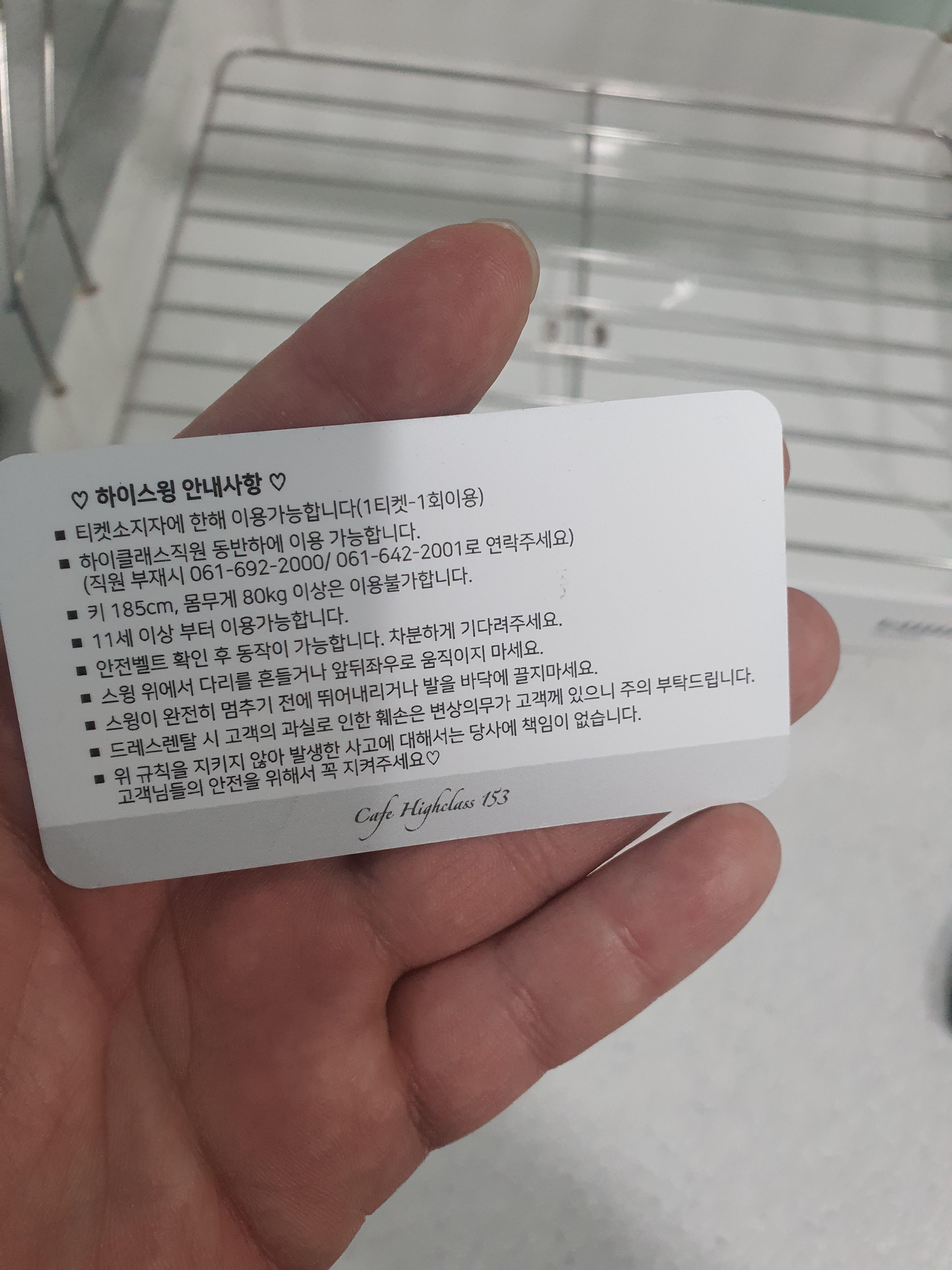 스윙 일하는 그네 낭떠러지에 달려 있는 그네가 있는데 객실 예약을 하면 이용권 한 개를 줍니다.