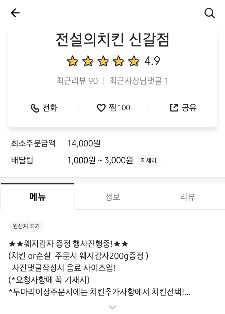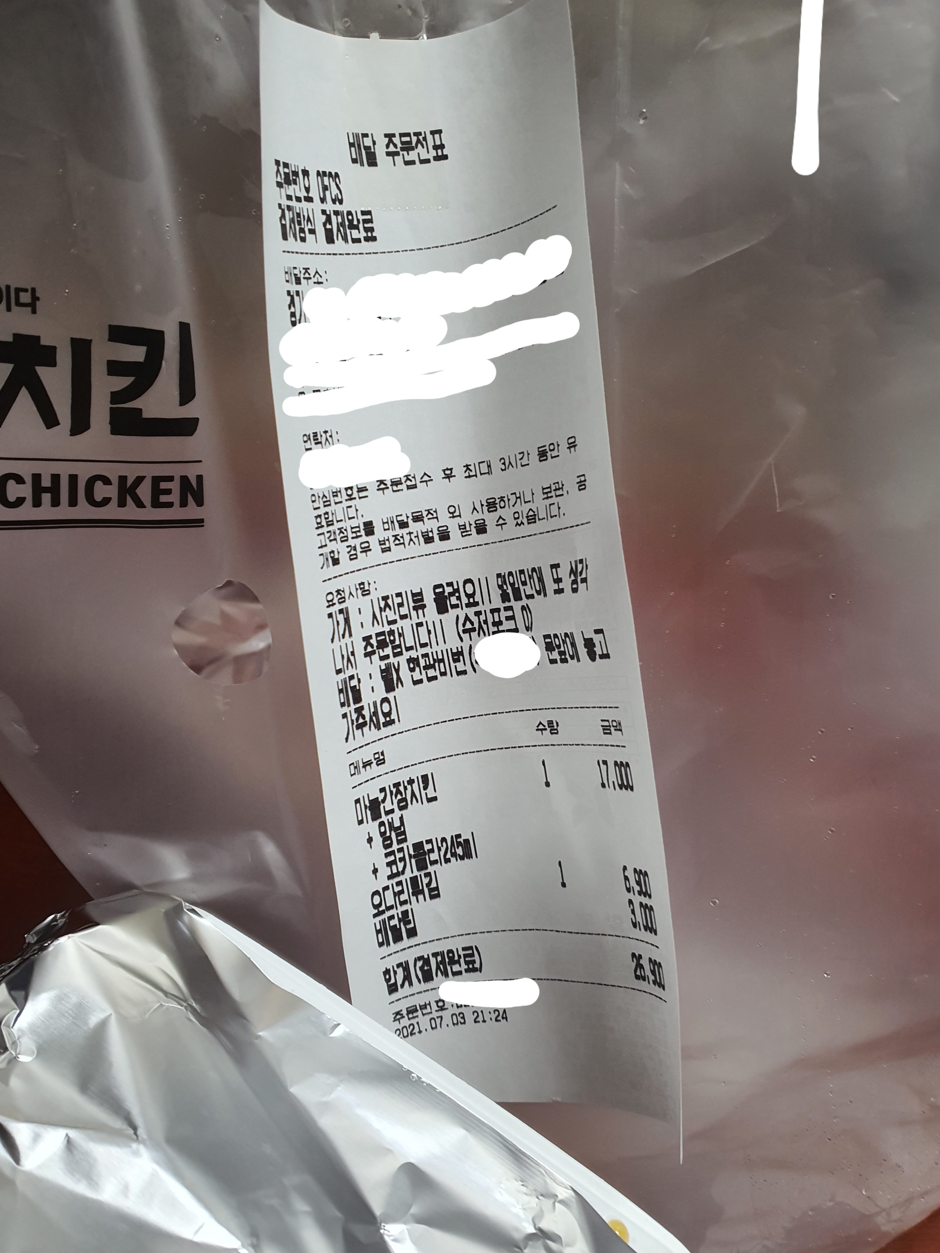 오늘은 용인에서 전설의 치킨을 시켜먹었습니다.
