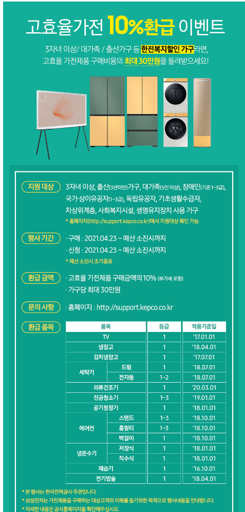 -가전제품 구매기간 역시 21년 4월 23일 이후 구매한 고효율 가전에 한함!!