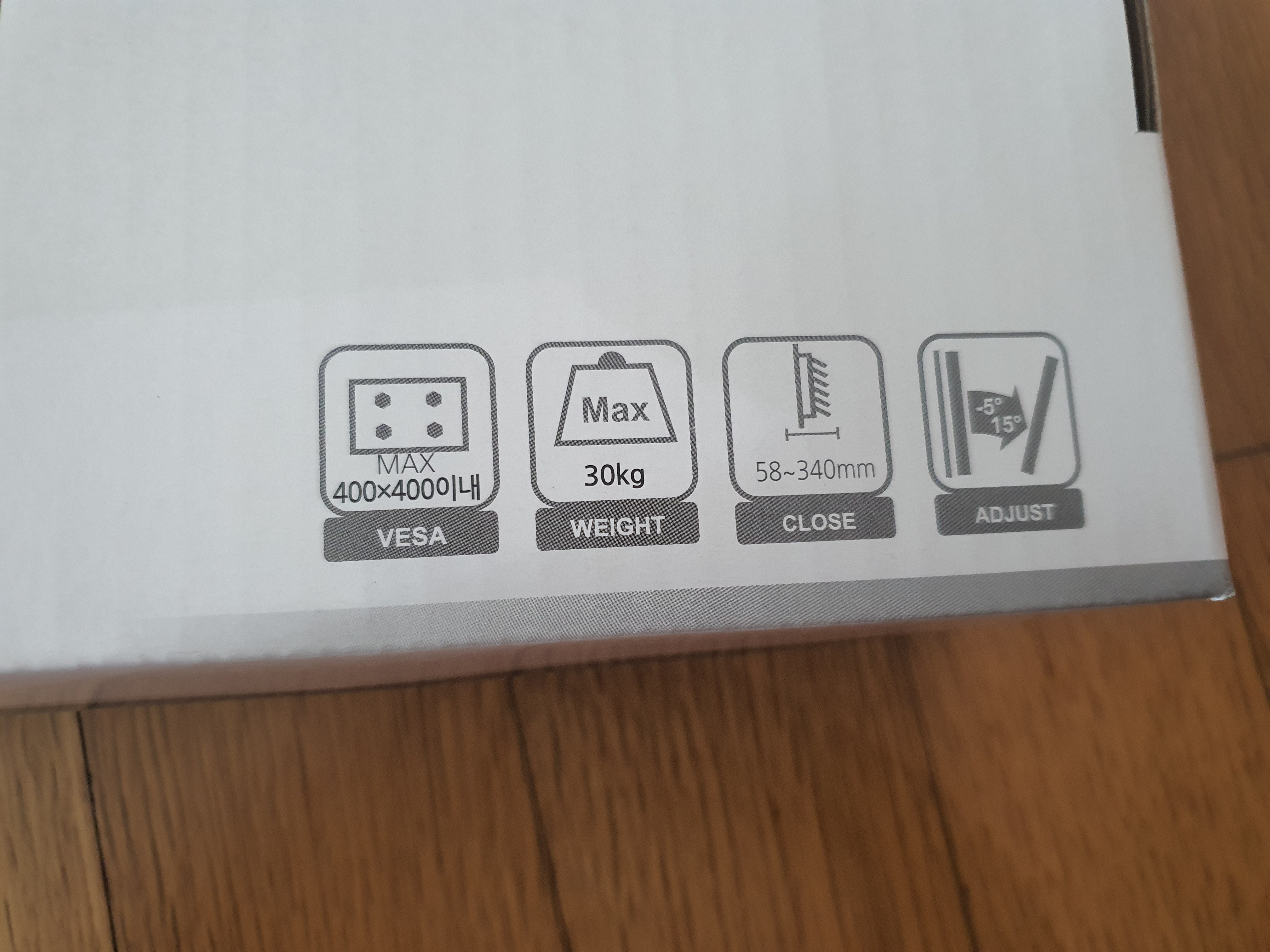 vesa규격이 200x200부터 400x400까지 사용이 가능하구여! 거치가능한 무게는 30kg까지 가능합니다.