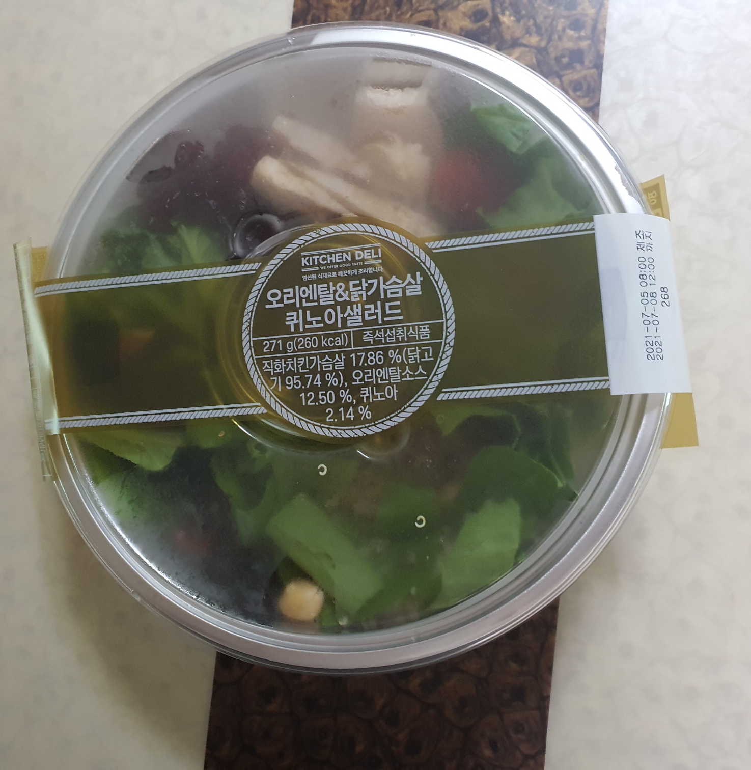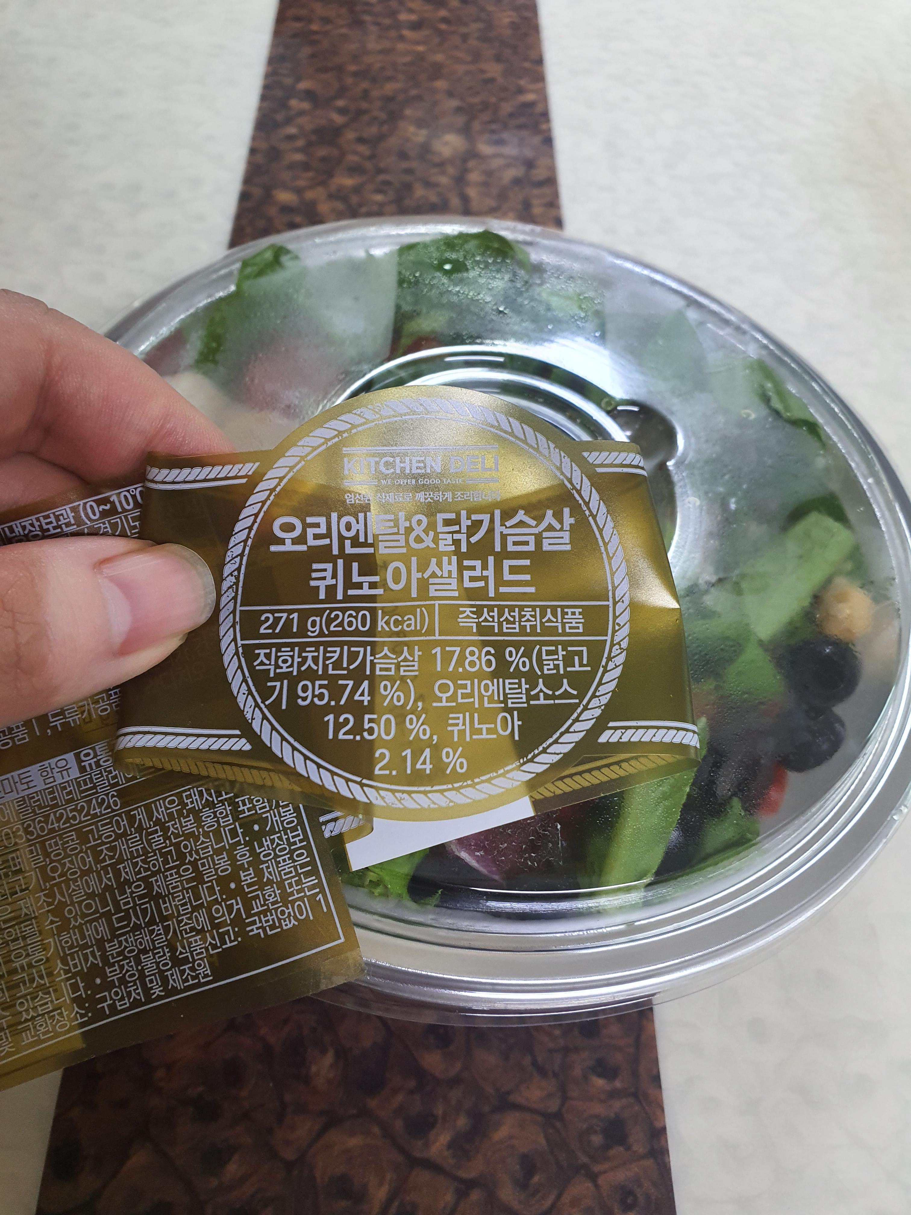 이마트에서 구매한 식사대용 오리엔탈&퀴노아 닭가슴살 샐러드 구매하고 우리 살빼봅시다.