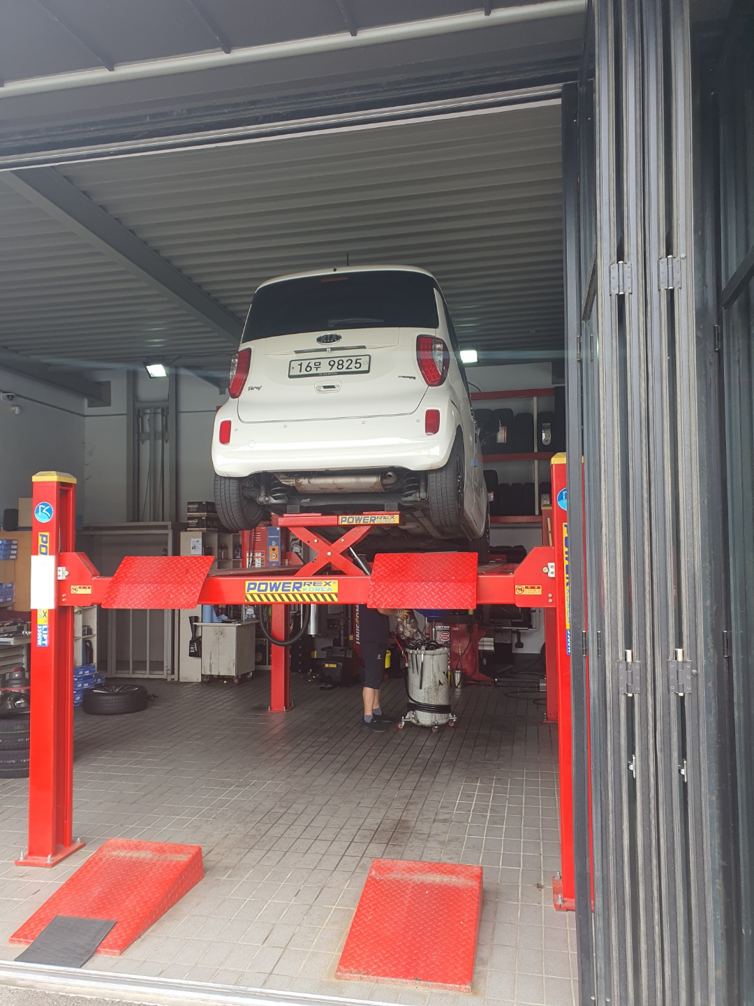 자동차를 리프트에 올리고,