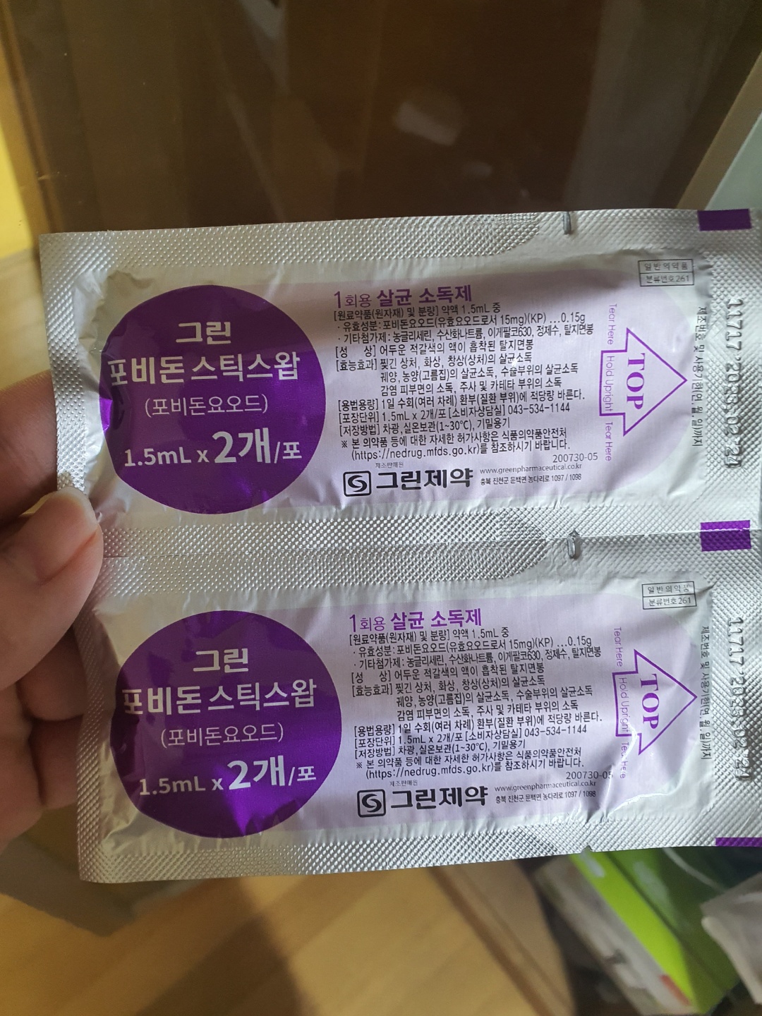 -준비물 : 베타딘 또는 포비돈 스틱스왑 3개, 거즈, 반창고