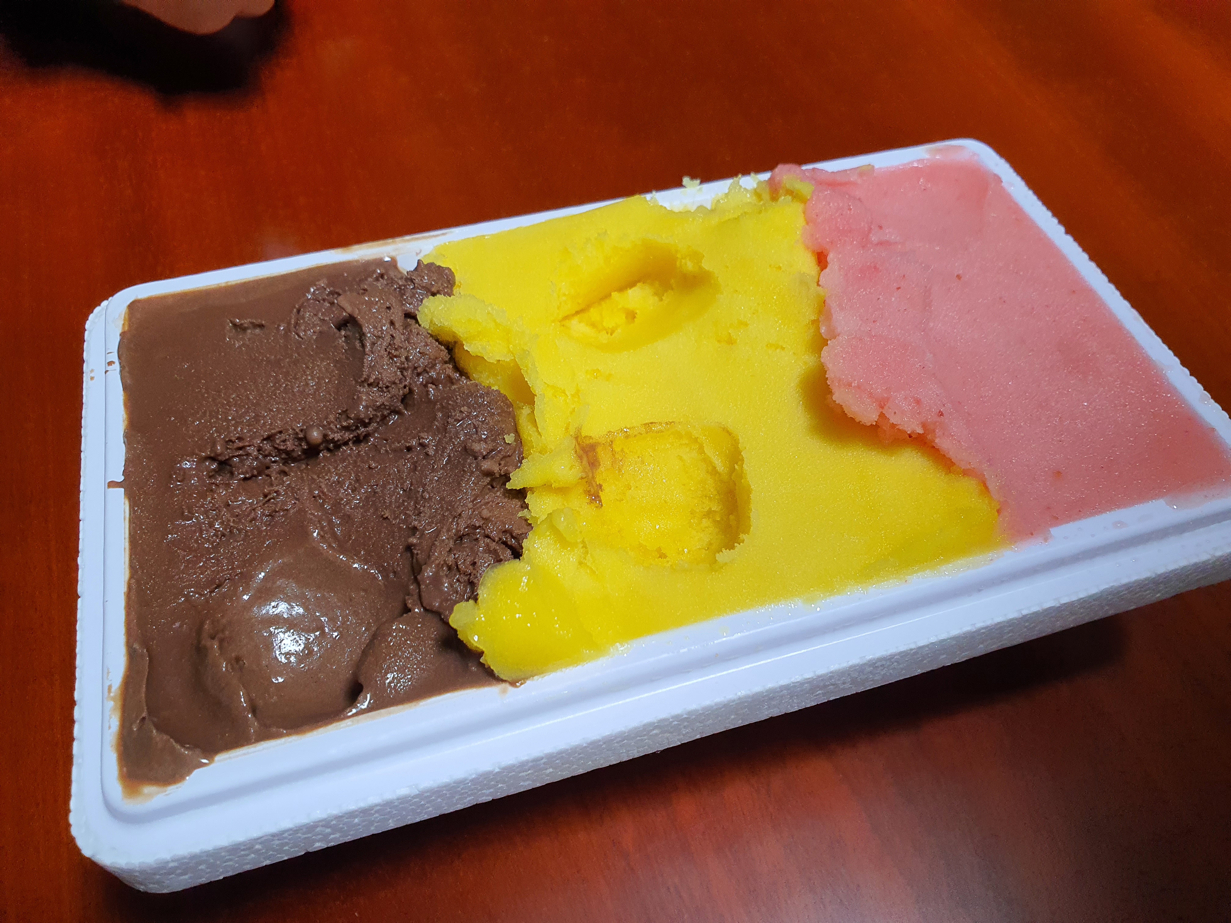 제가 고른 맛은 망고, 다크 초콜릿, 딸기 소르베 입니다!