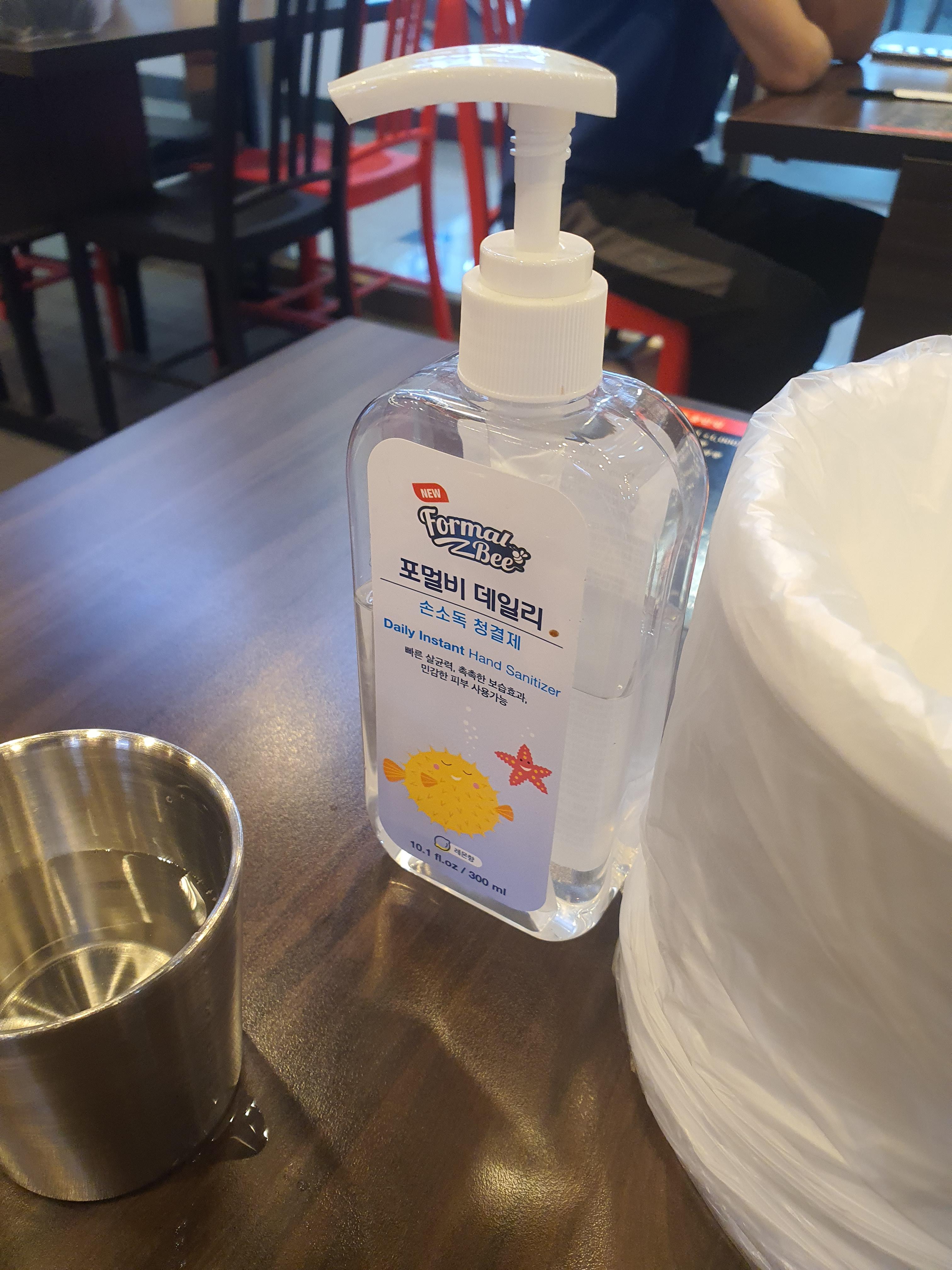 모든 테이블에 손소독제가 비치되어 있으니