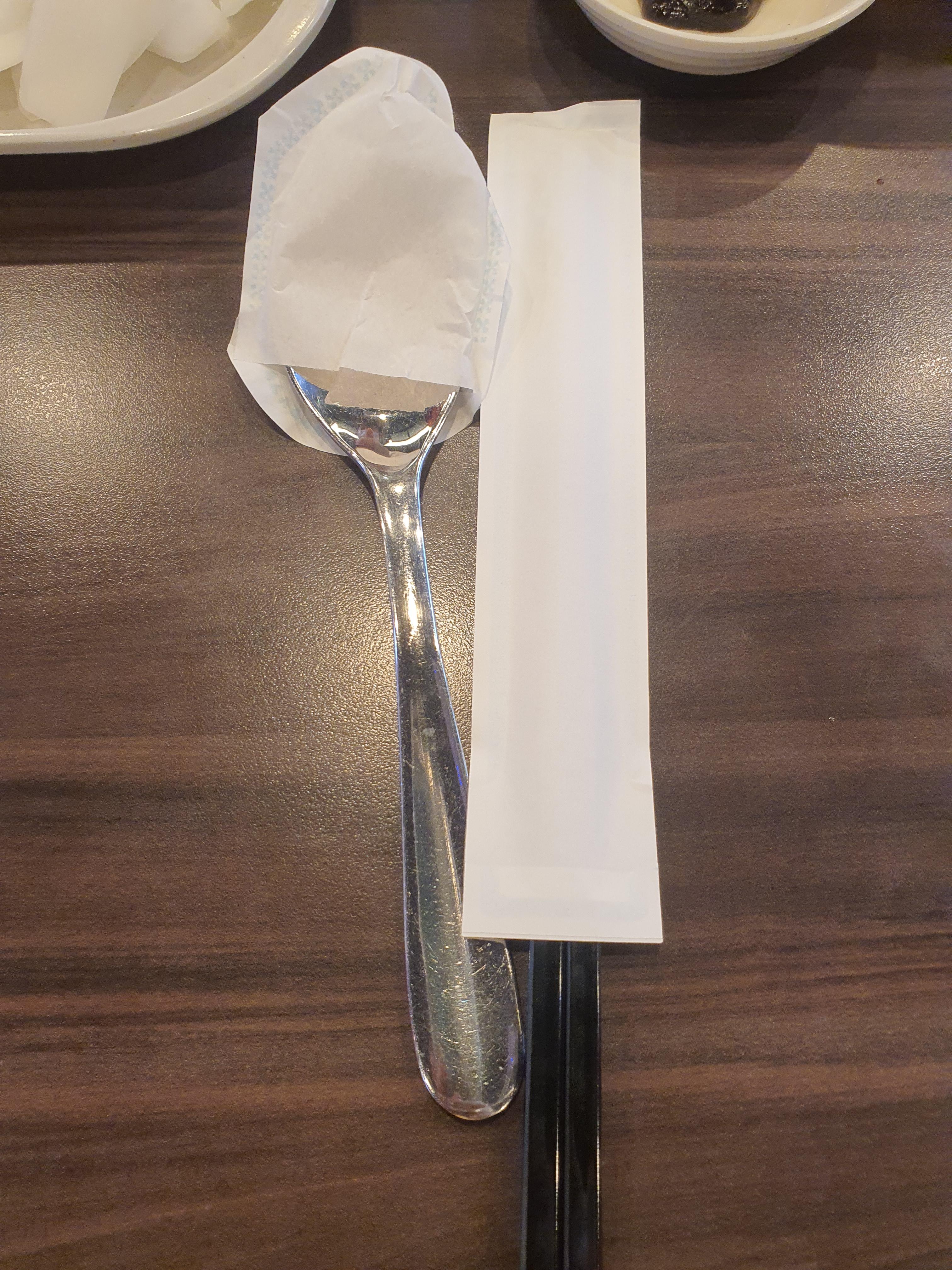 숟가락과 젓가락 휴지 그리고 앞치마까지