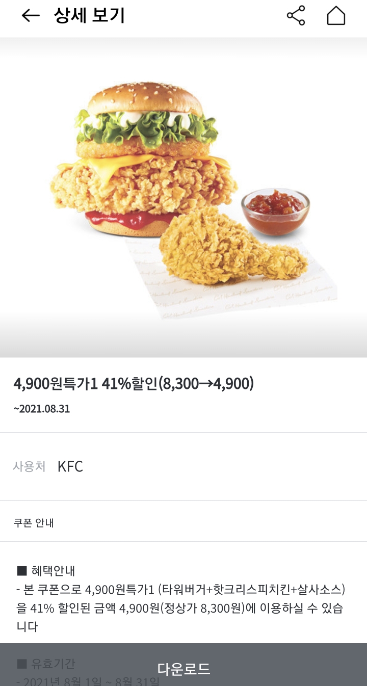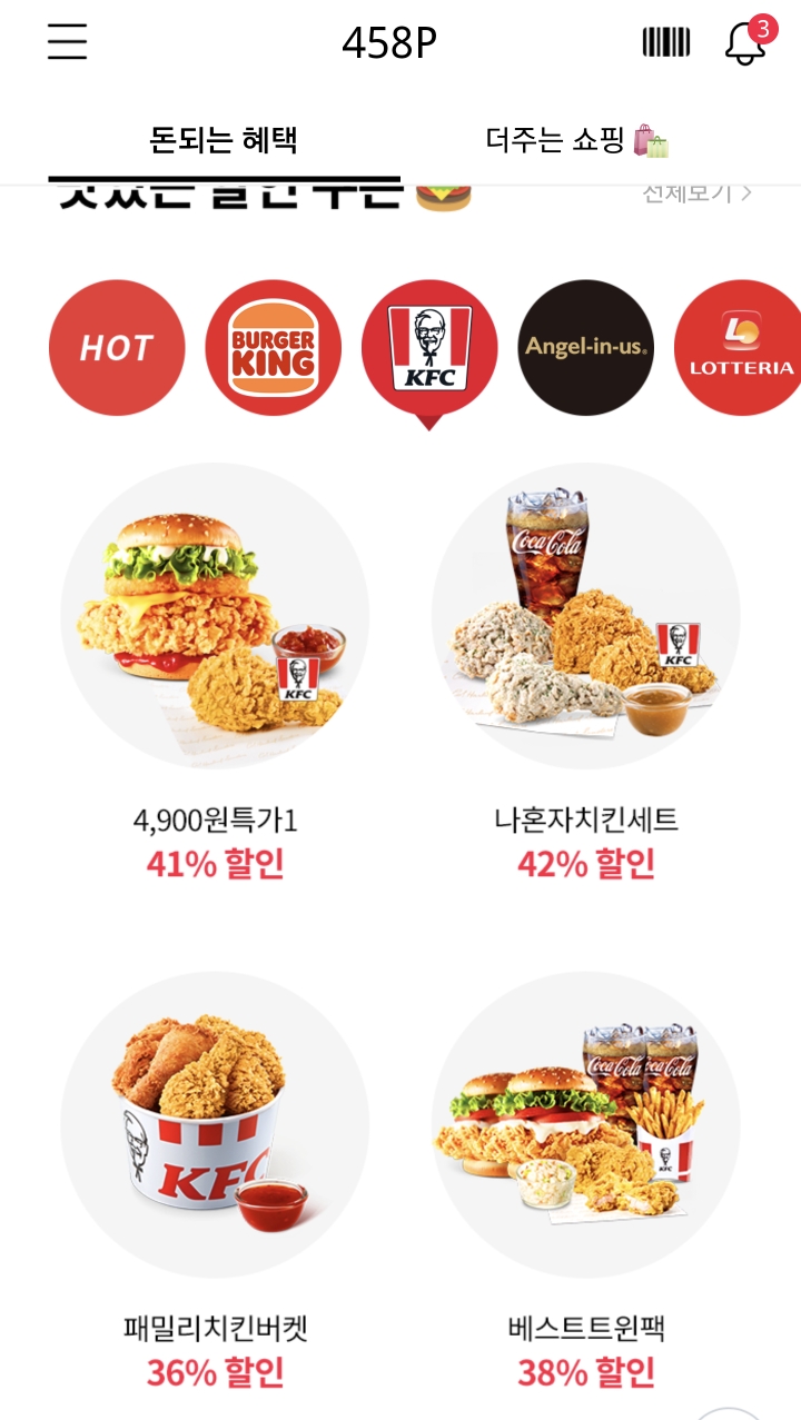 전 KFC 에서 버거를 먹을때, 꼭 시럽앱이나 오케이캐쉬백 앱을 이용합니다.