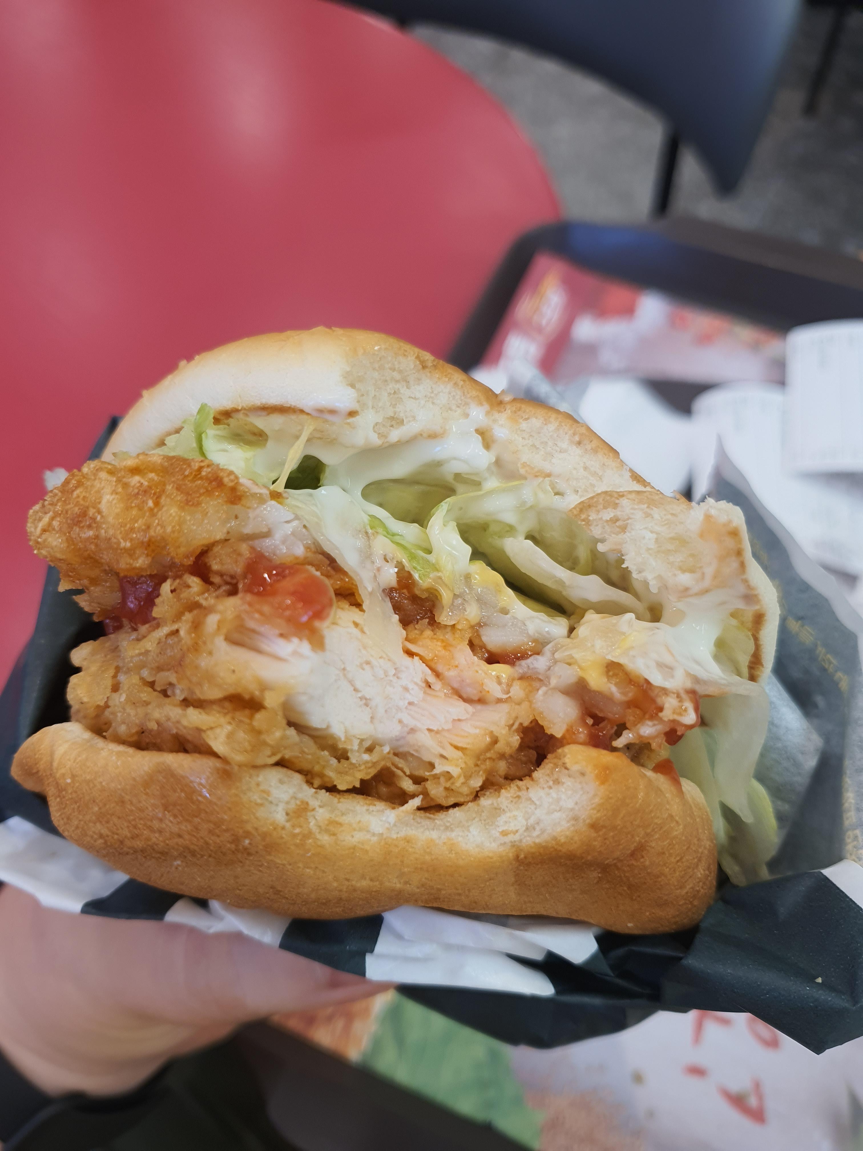 치킨 패티 뿐만 아니라 치킨 패티 위에 해쉬브라운 치즈가 들어가 있어서 살짝은 느끼한 맛이 있긴 하지만..