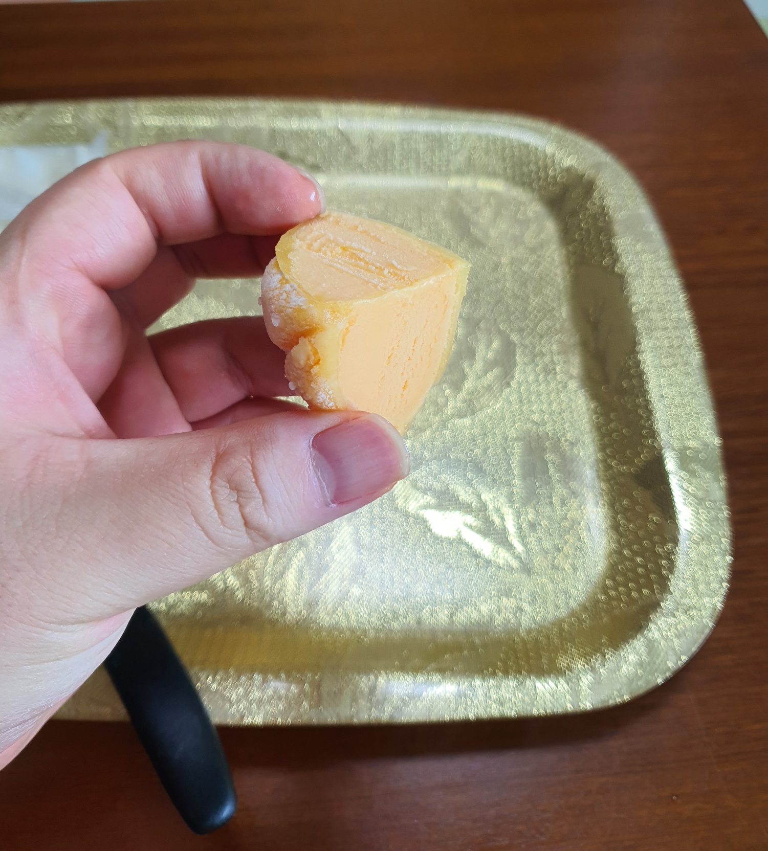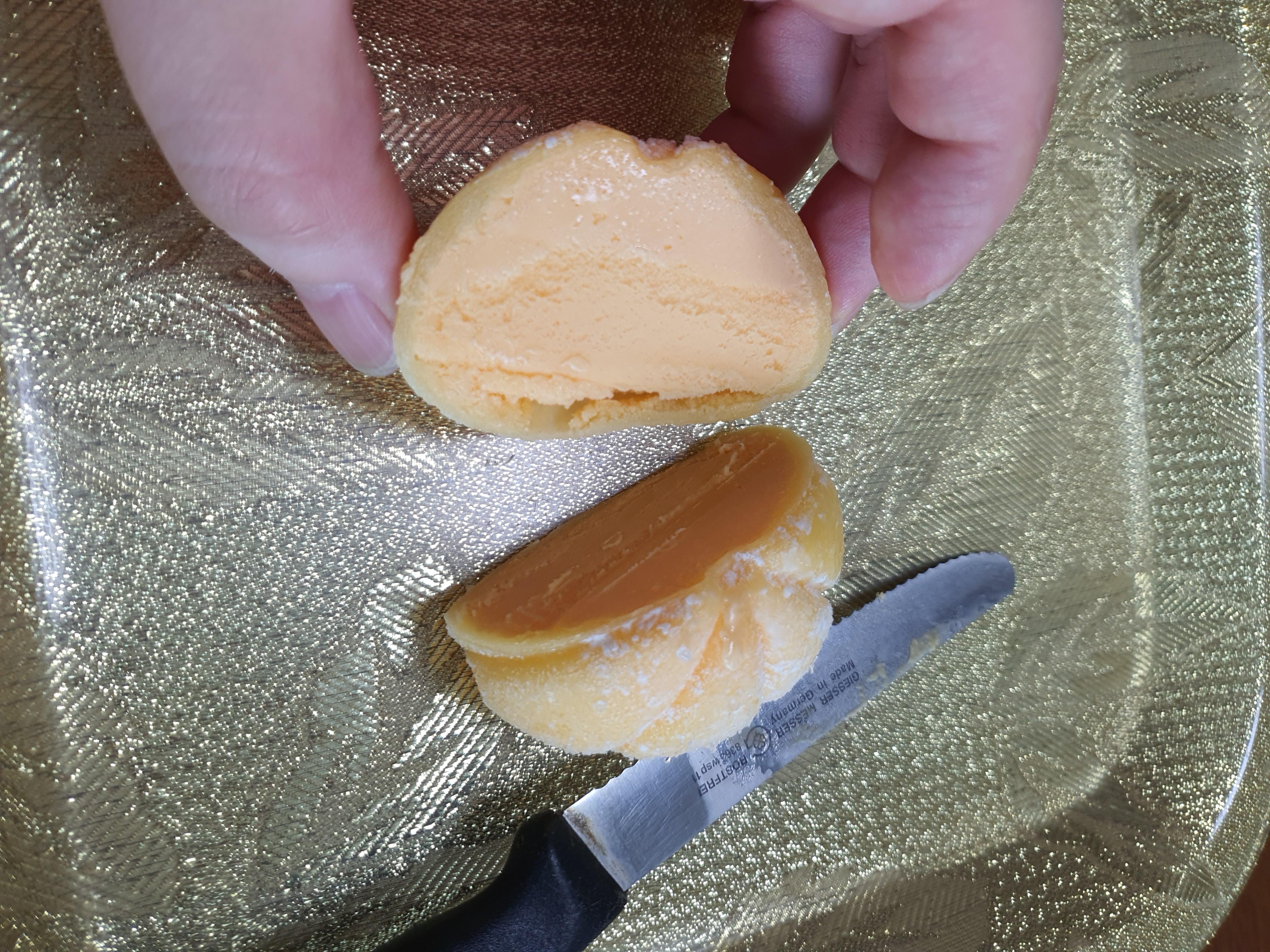 감귤 농축액이 들어서 아이스크림 소가 감귤색입니다.