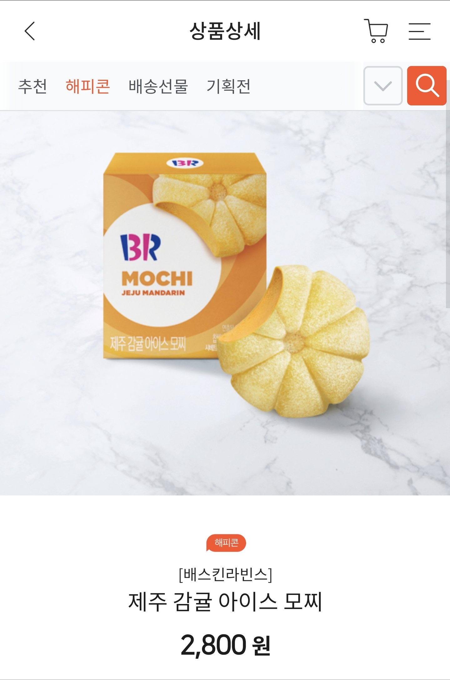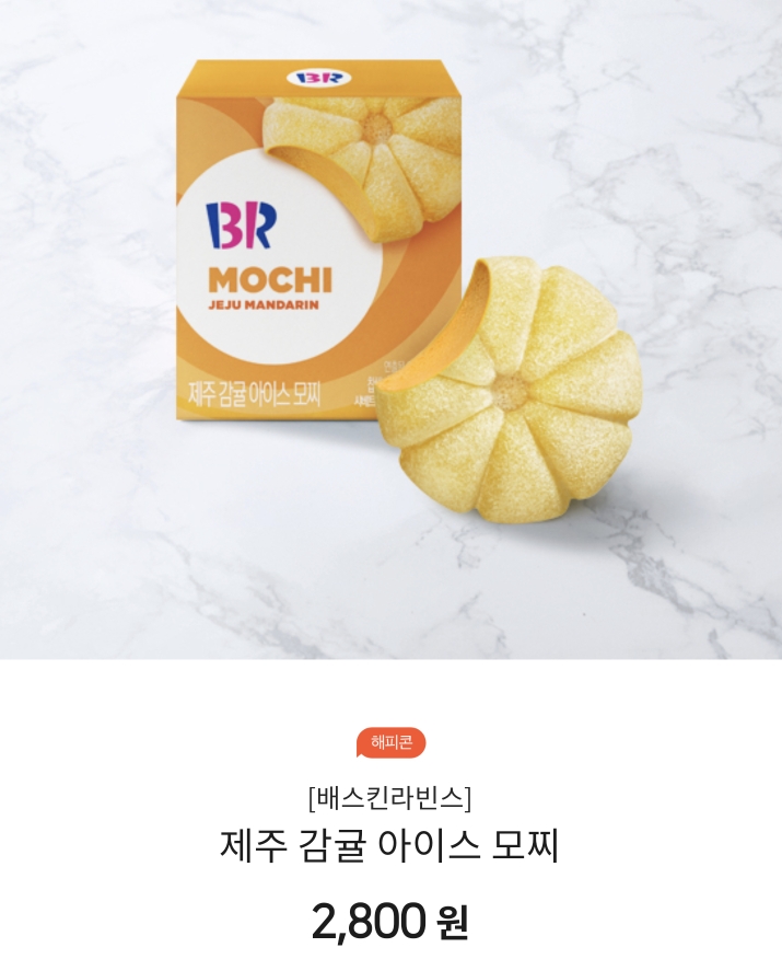베스킨라빈스에서 파는 모찌 종류가 굉장히 다양하게 있는데 왠지 제주 감귤 아이스모찌 모양이 너무 예뻐서 구매를 해봤습니다.