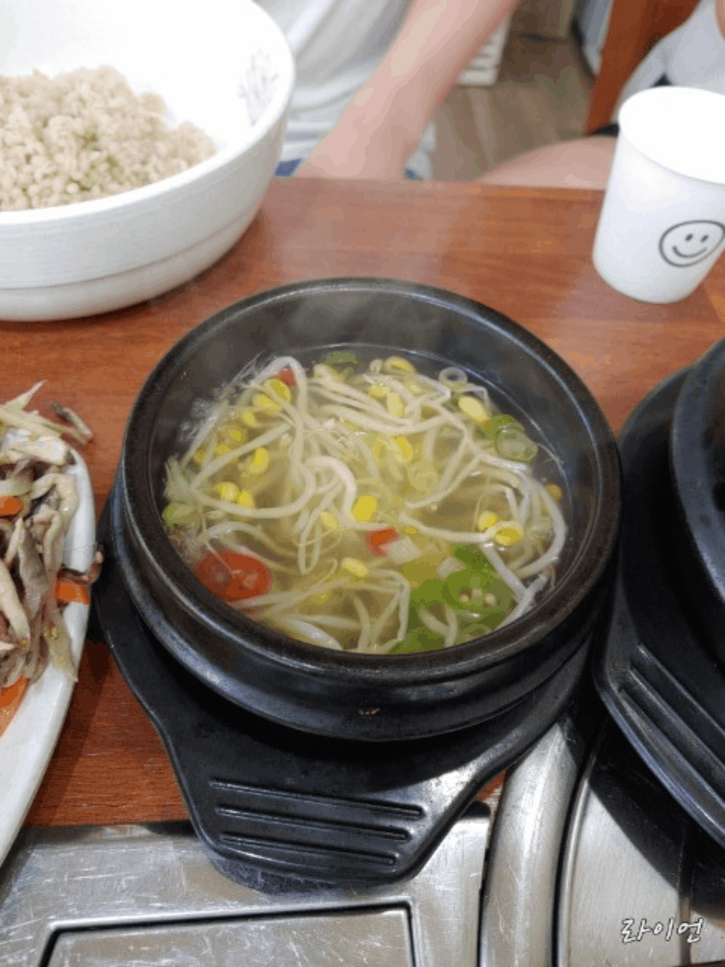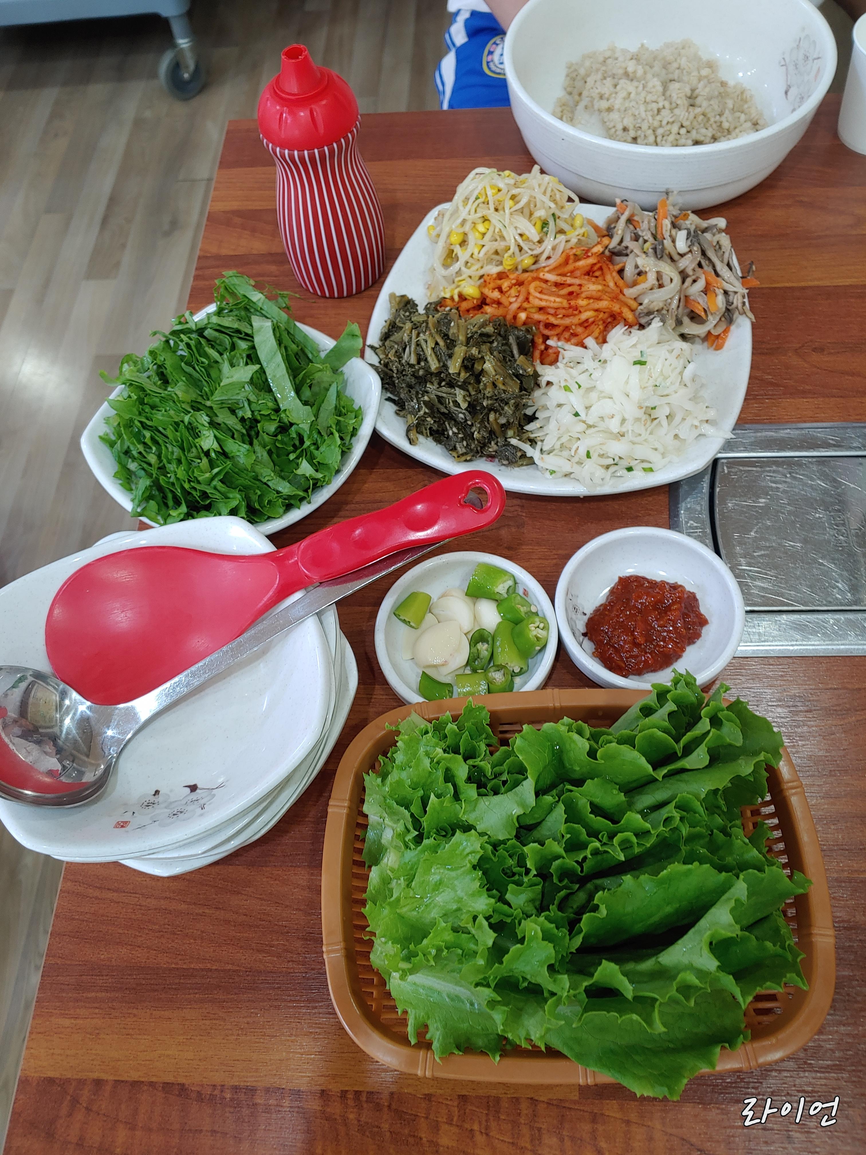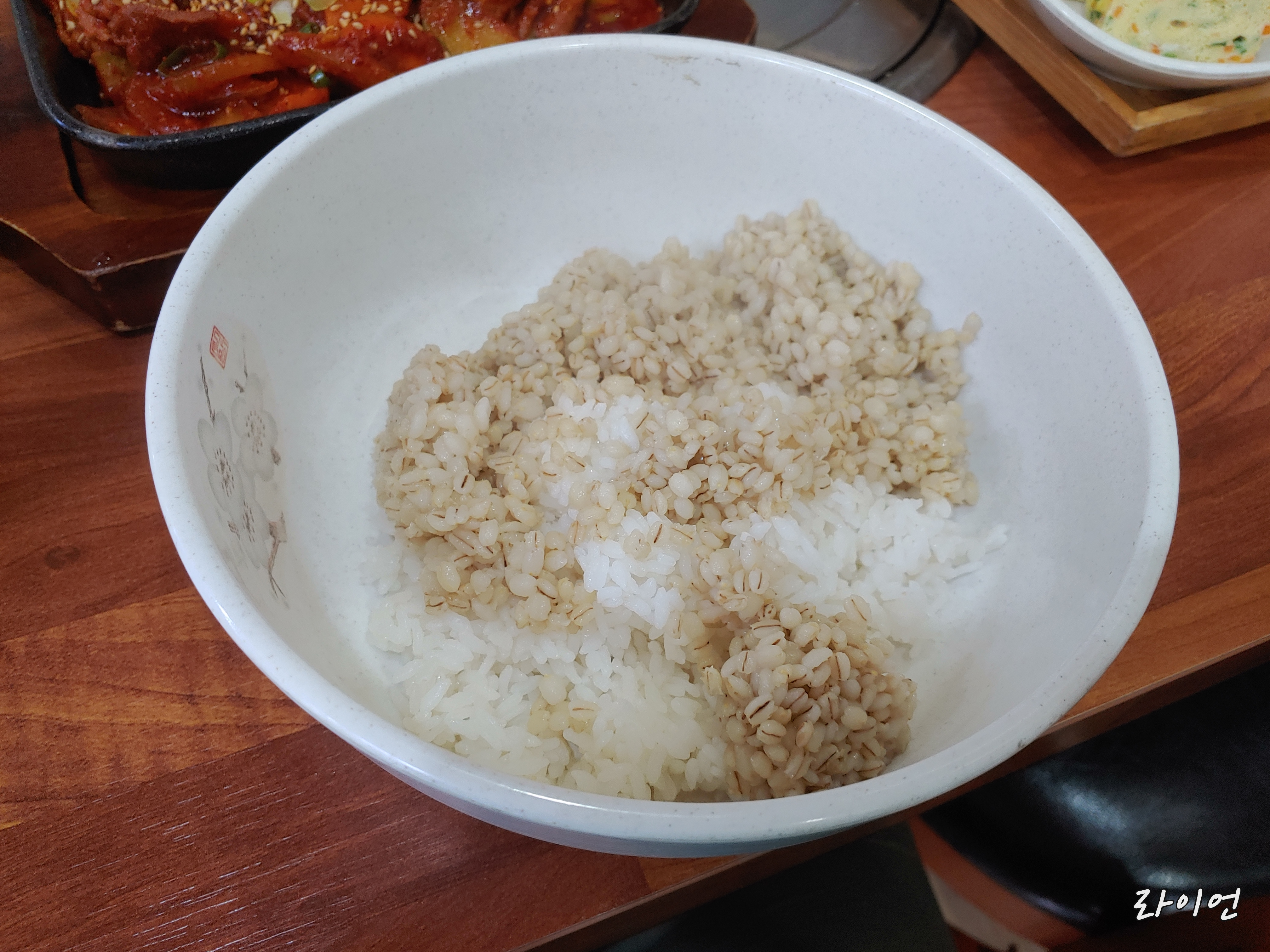 완전 꽁보리밥은 맛이 없죠 일밤 하얀 밥이랑 꽁보리 밥이랑 적당하게 섞여서 밥그릇이 나오는데 겸직하게 나와서 비벼 먹게 너무 좋은 대접에 잘 나옵니다.
