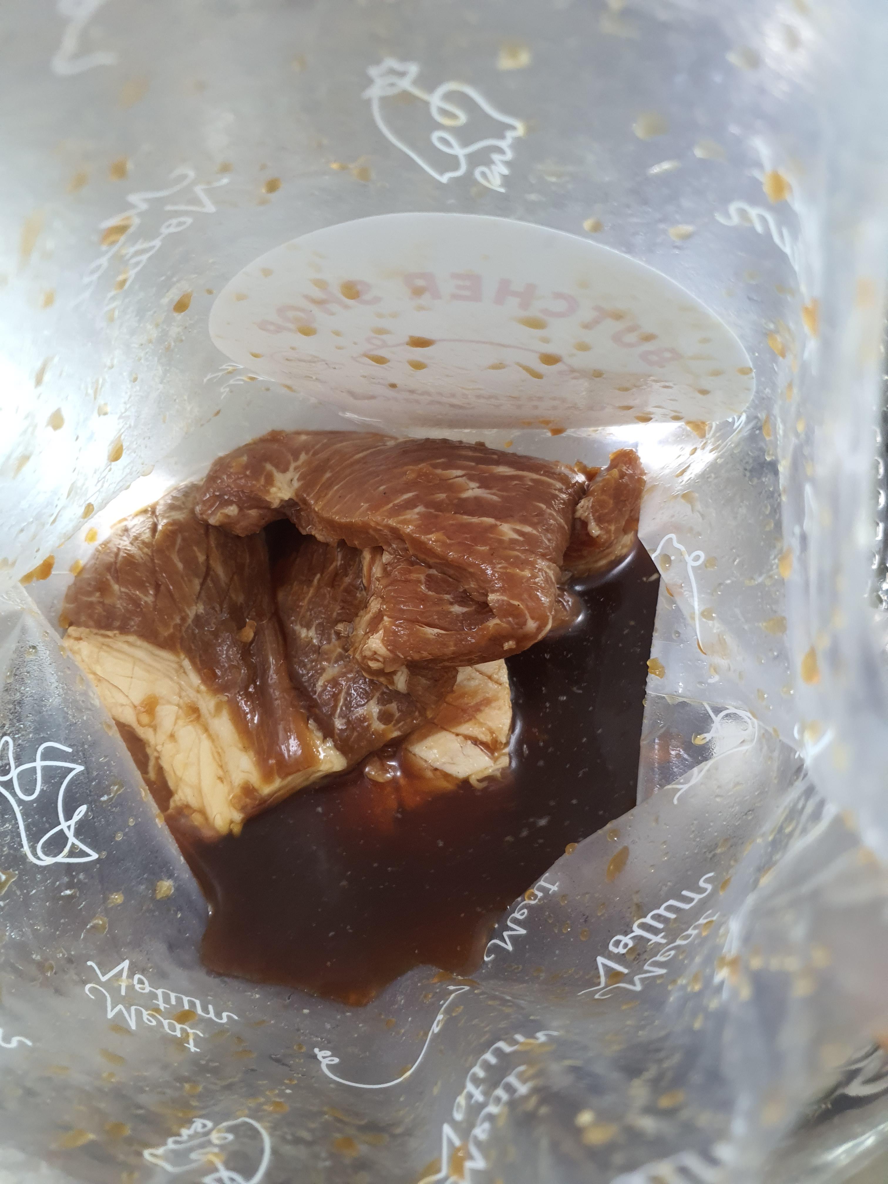 고기는 총 다섯 덩어리가 들어있었어요 조금 두툼한 것도 있고 조금 흐느적거리는 것도 있었는데 흐느적거리는게 확실히 부드럽고 맛있습니다 두툼한 것은 약간 뻣뻣한 맛이 있긴 합니다