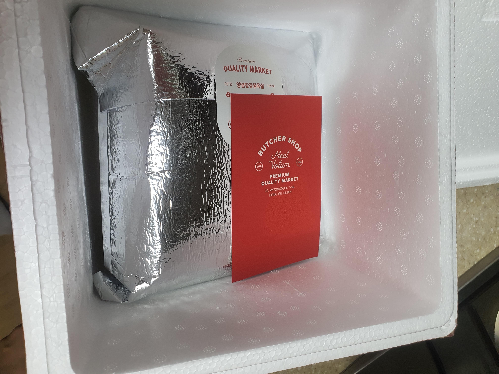 한 판만 구웠는데 남은 고기가 이거 한 덩이 밖에 안 남았네요 1kg 만 주문을 했거든요