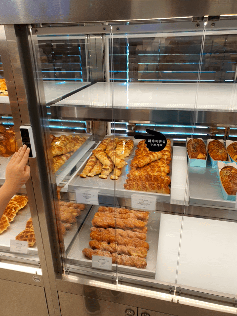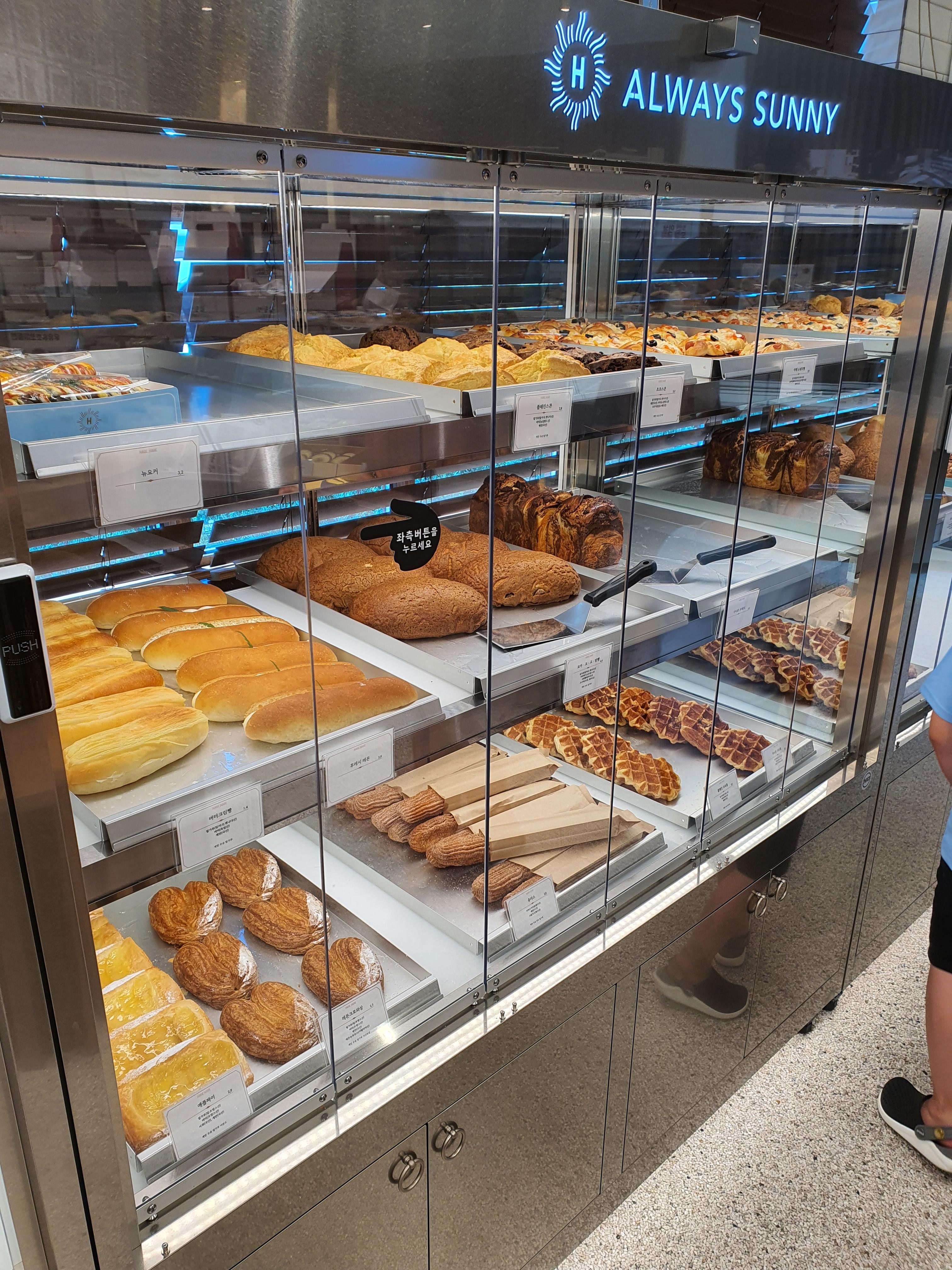 그래서 좌측에 있는 버튼을 누르면 얘가 열렸다 닫혔다 하는 빵 저장고 빵 보관소의 독특한 시스템입니다.