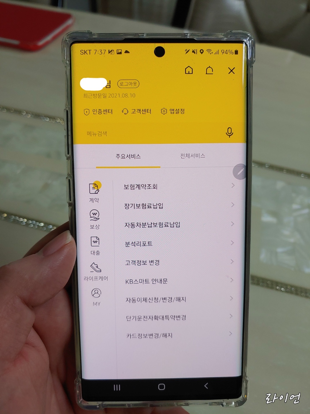 KB손해보험의 예로 앱으로 들어가서