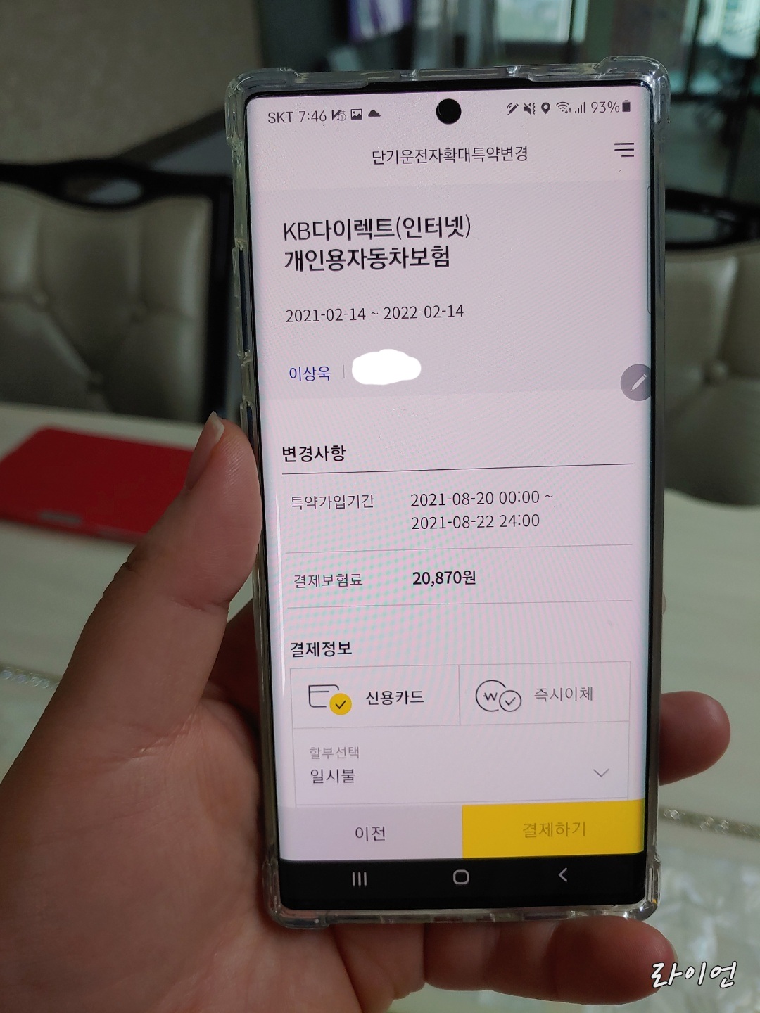 이때, 운전을 할날짜를 지정하고, 돈을 입금 또는 카드로 결제를 하게 되면, 해당 날짜에는 차주 (피보험자) 이외에 어떤 사람이 운전을 해도 상관이 없습니다.