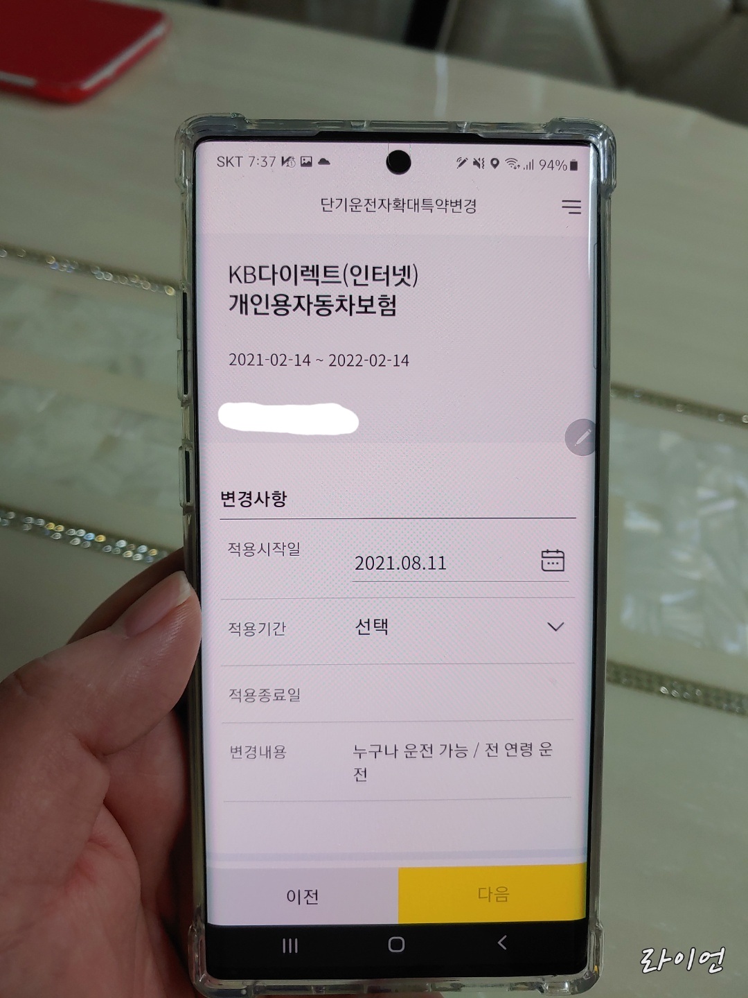 (자동차 보험 tip)내차를 남이 몇일만 하 운전하게 되면 자동차 보험은 어찌 해야할까? "단기운전자 확대특약 변경" by KB손해보험
