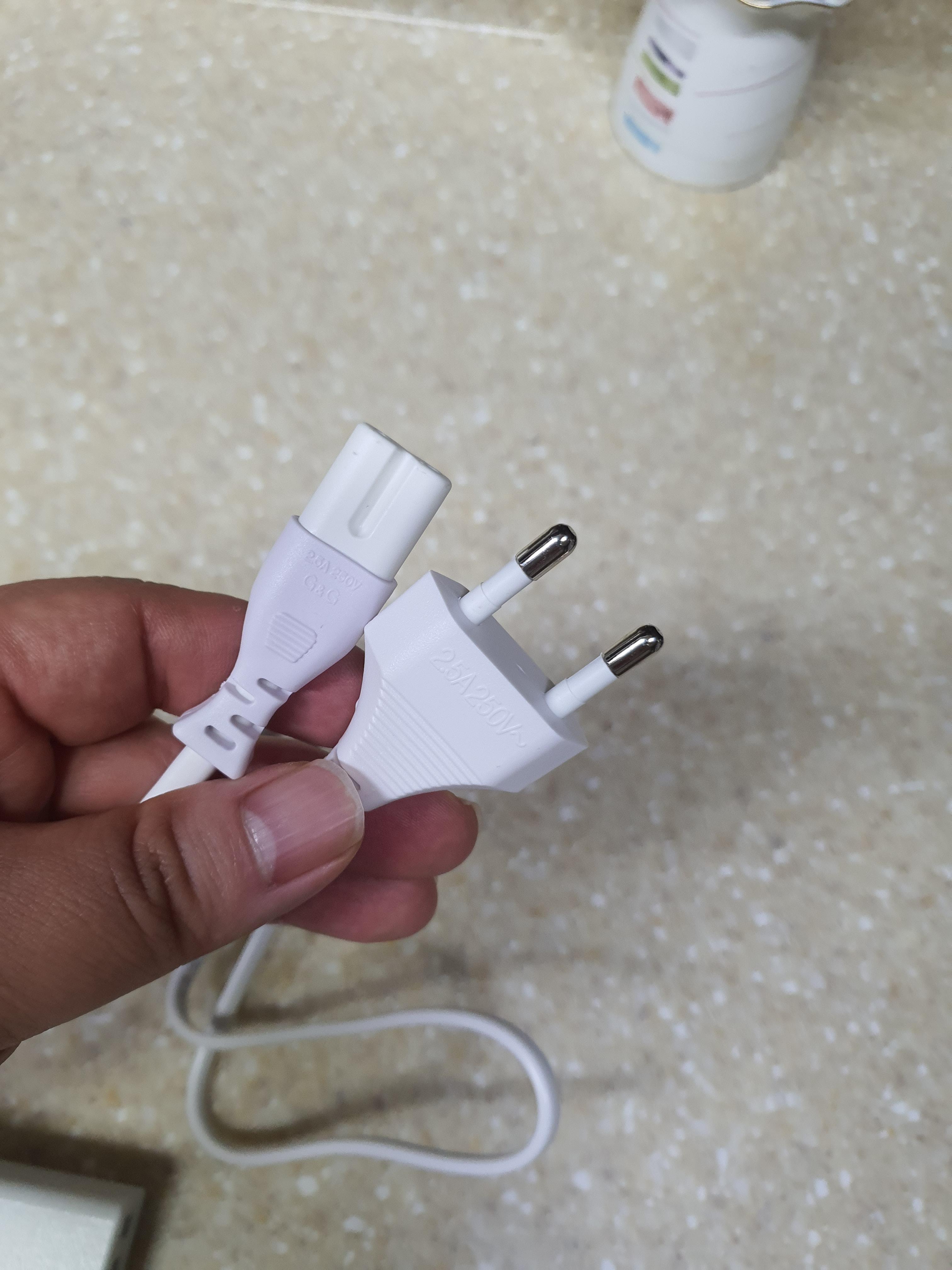 구성품은 충전기 본체랑 케이블이 있습니다 본체 내 아답터가 있기 때문에 케이블은 굉장히 단순하게 생겼어요 옛날에 우리가 쓰던 라디오 전원 케이블과 비슷한 느낌입니다.