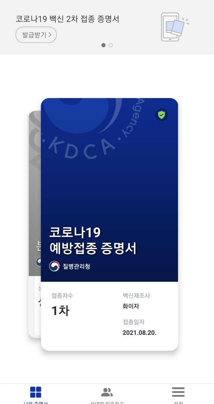 이걸로 코로나 예방 접종 증명서를 대체가 가능하네요!