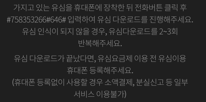 #758353266#646# 을 눌러서 유심다운로드를 진행한다.