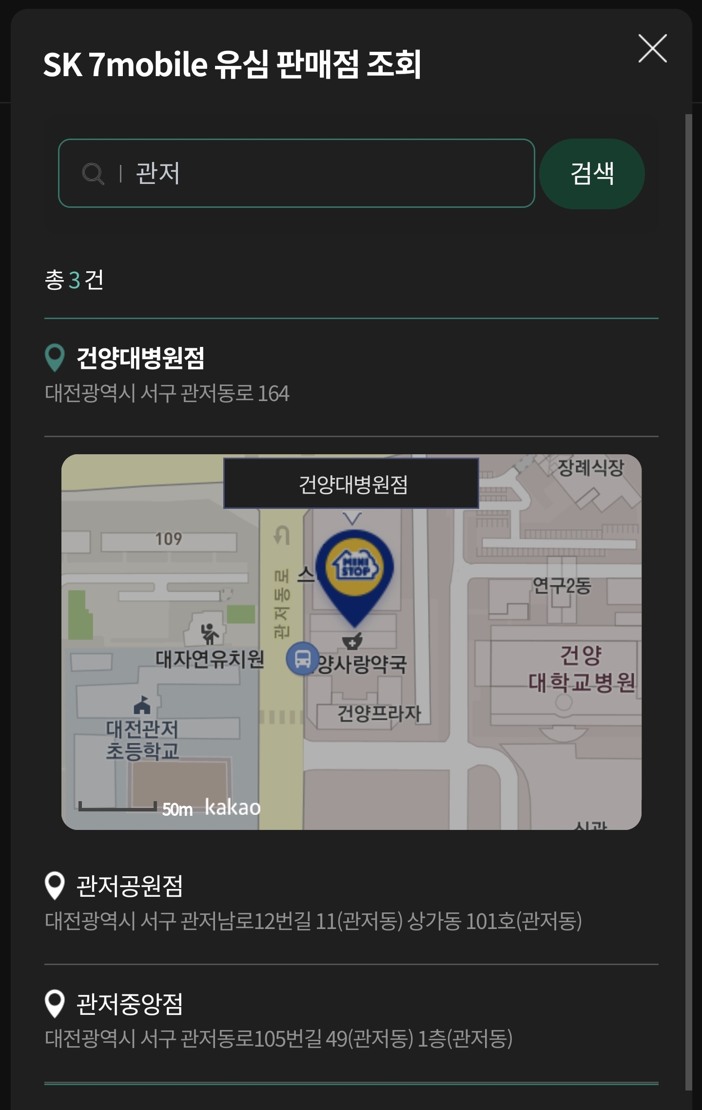 대전 관저동에서 sk세븐모바일 유심 구매를 원하시는 분들은 꼭 건양대병원 미니스톱에서 구매하시길 바랍니다 여기에서만 판매합니다!
