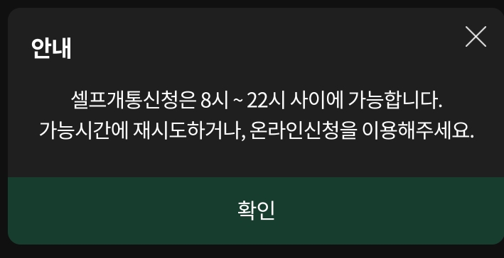 단 셀프개통은 오전 8시부터 오후 10시까지만 가능 하니 이시간때에 진행 하도록 하자 ㅎㅎ