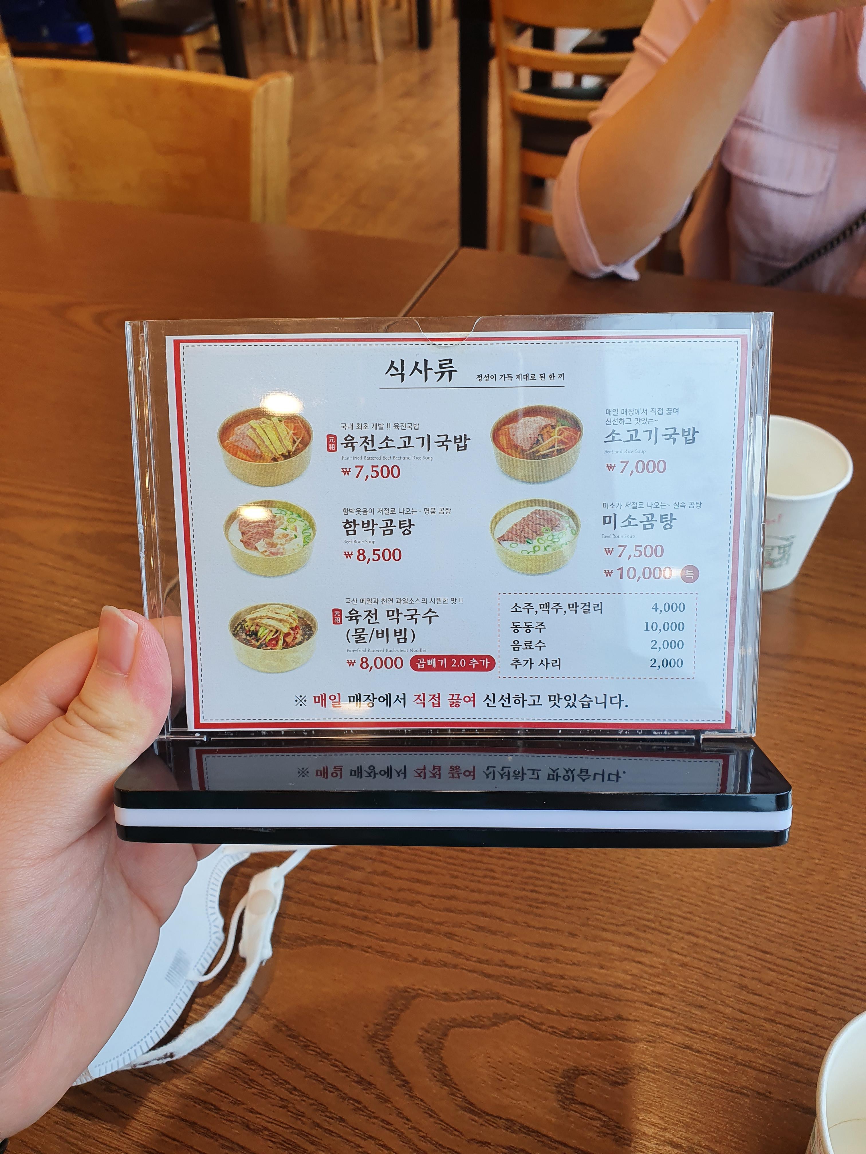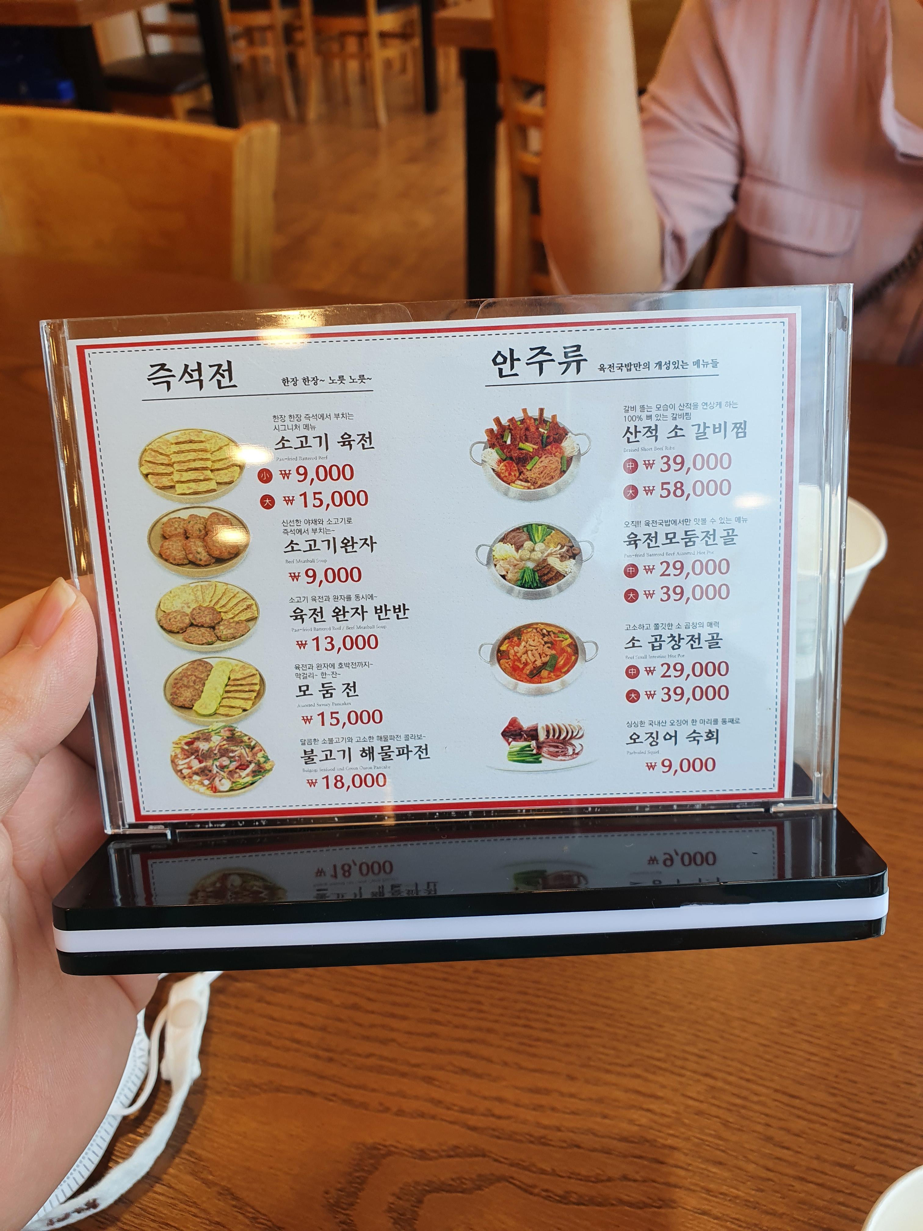우선 육전 국밥 메뉴를 보세요.