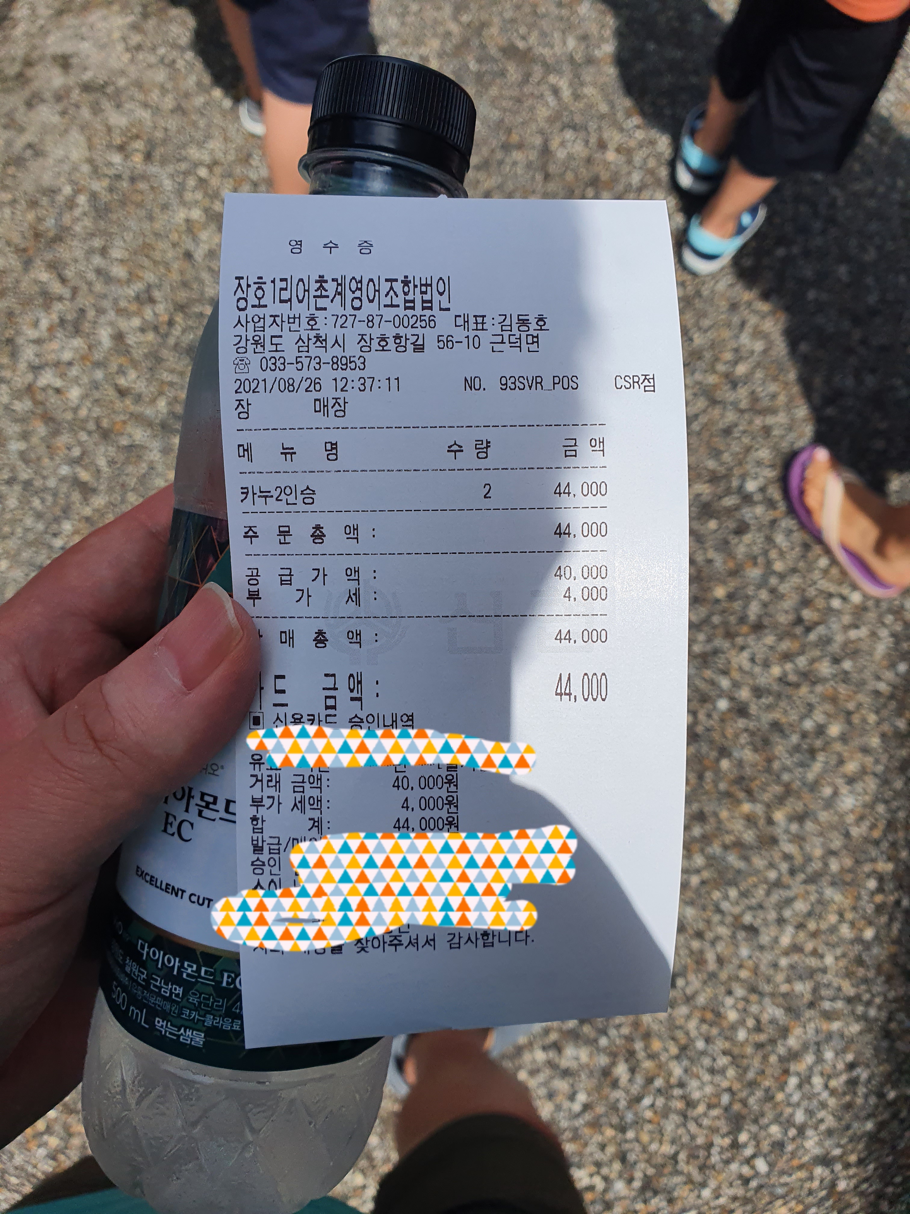 전 2인용 카누 2개 빌리고 44000원을 지불 했습니다.