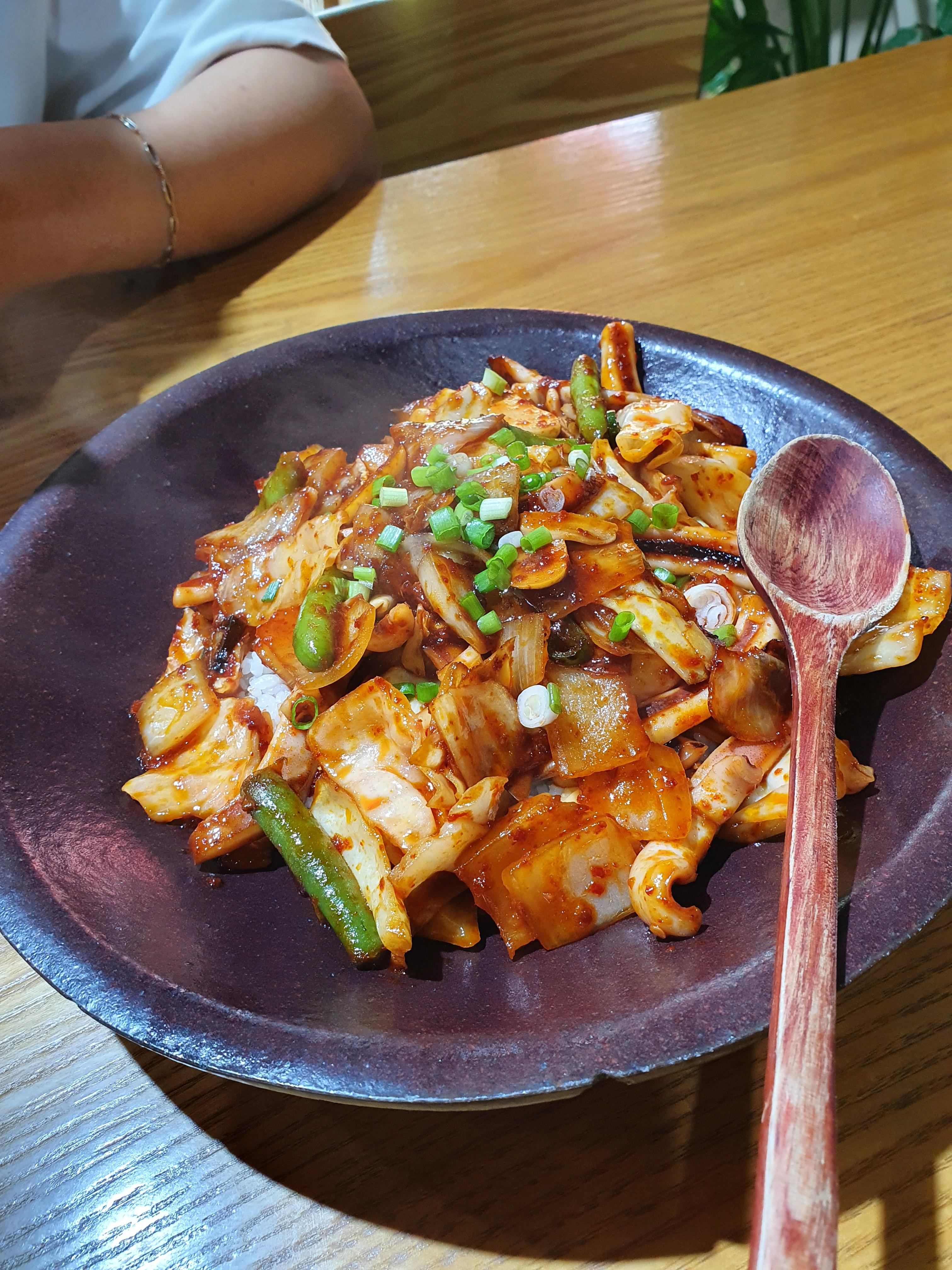 주문한 메뉴 중에 가장 먼저 나온 오징어 덮밥!