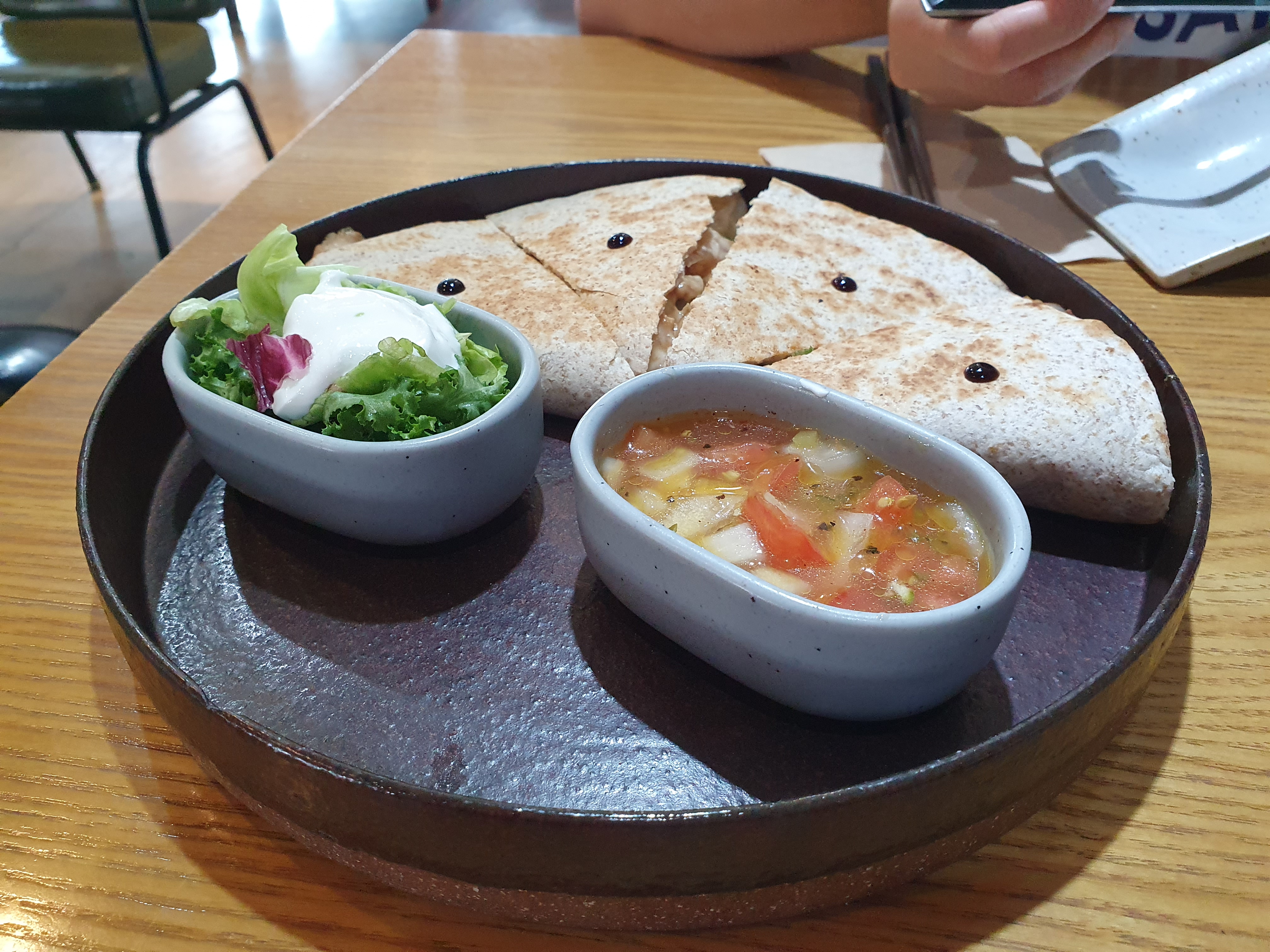 와이프가 엄청나게 귀찮을 해서 찾아갔죠 오징어 덮밥이랑 쌀국수랑 퀘사디아가 맛있다고 그래서 그거 먹으러 갔습니다.