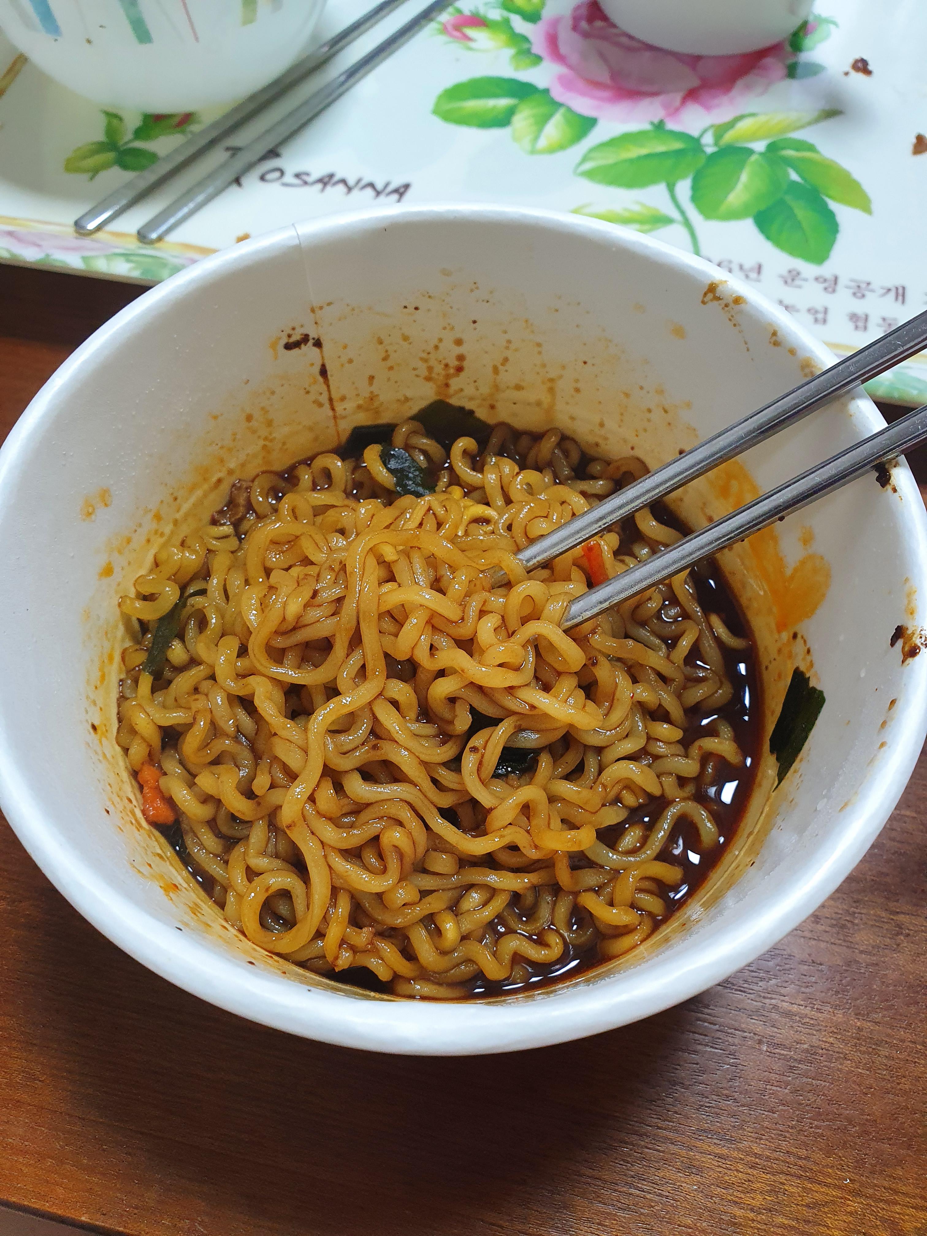 아까워서 짜파구리 1컵은 다 먹었지만..