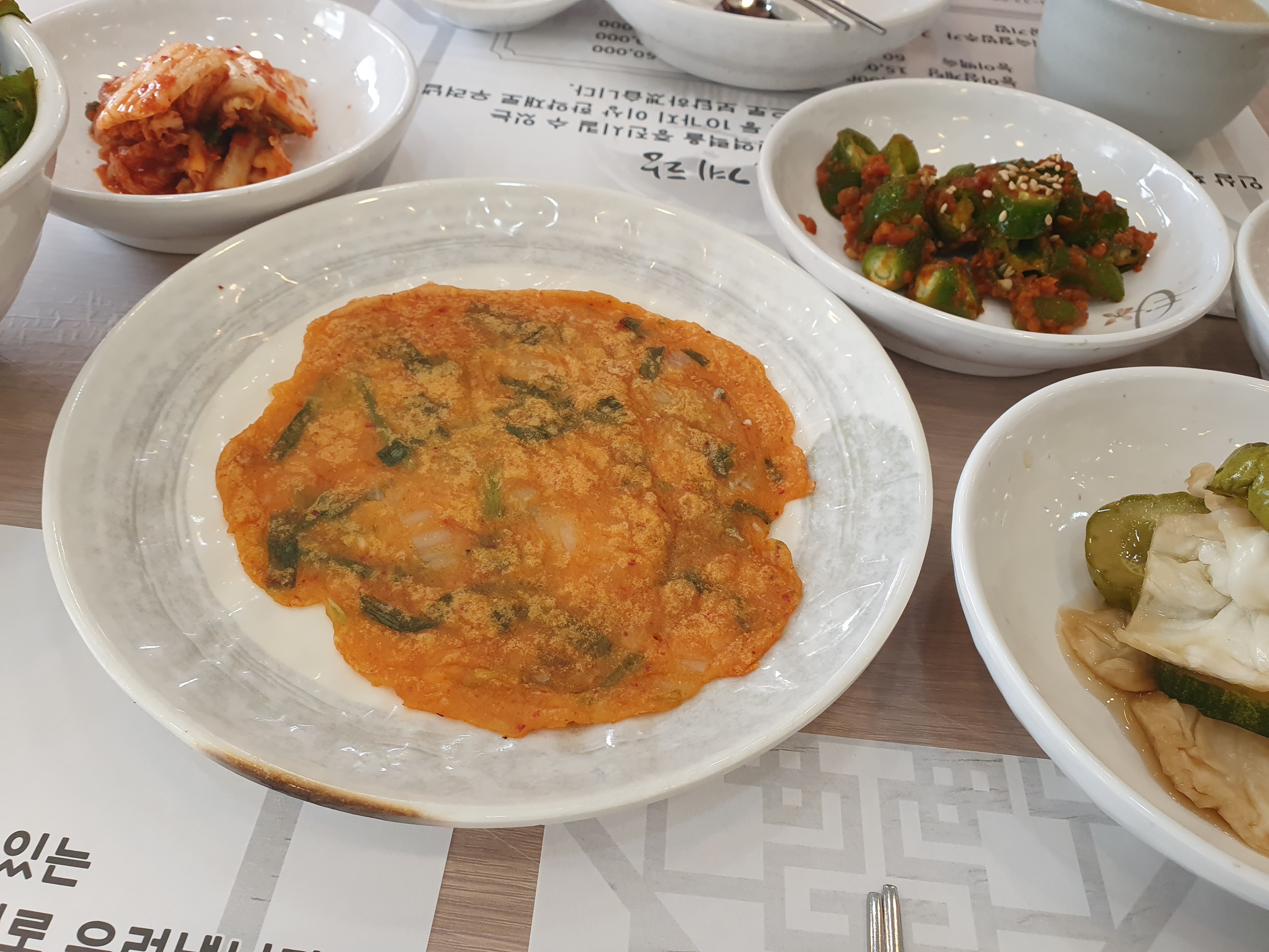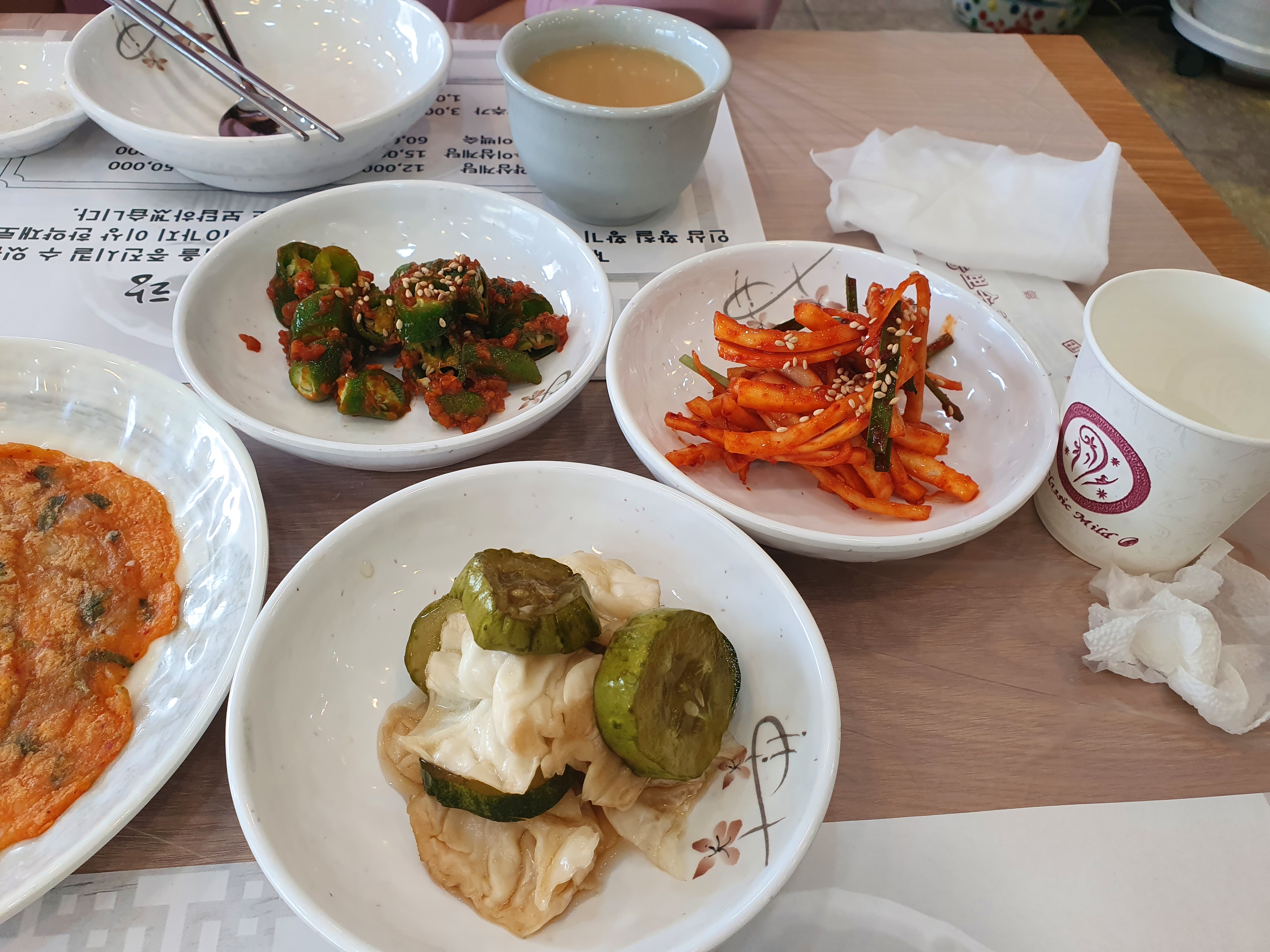 배추김치, 아삭이고추무침, 김치전, 오이양배추 피클, 도라지무침, 야채 겉절이 까지 생각보다 많은 반찬이 나옵니다.