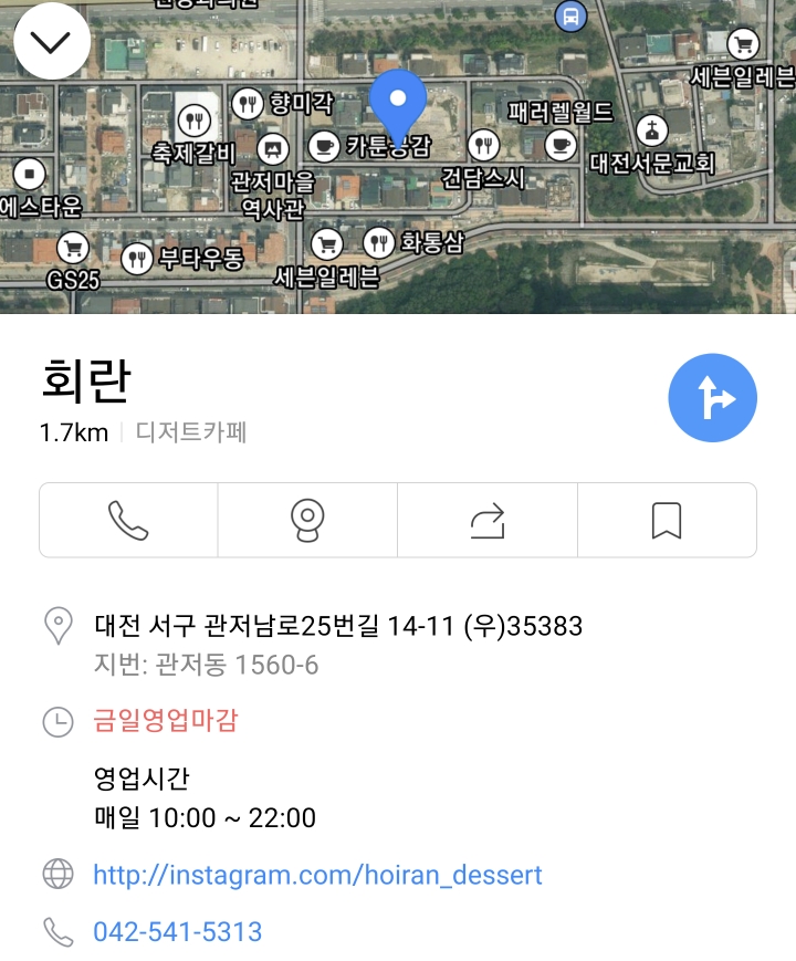 오늘은 관저동에 위치한 맛있는 디저트 카페 회란이란 곳을 찾았습니다.
