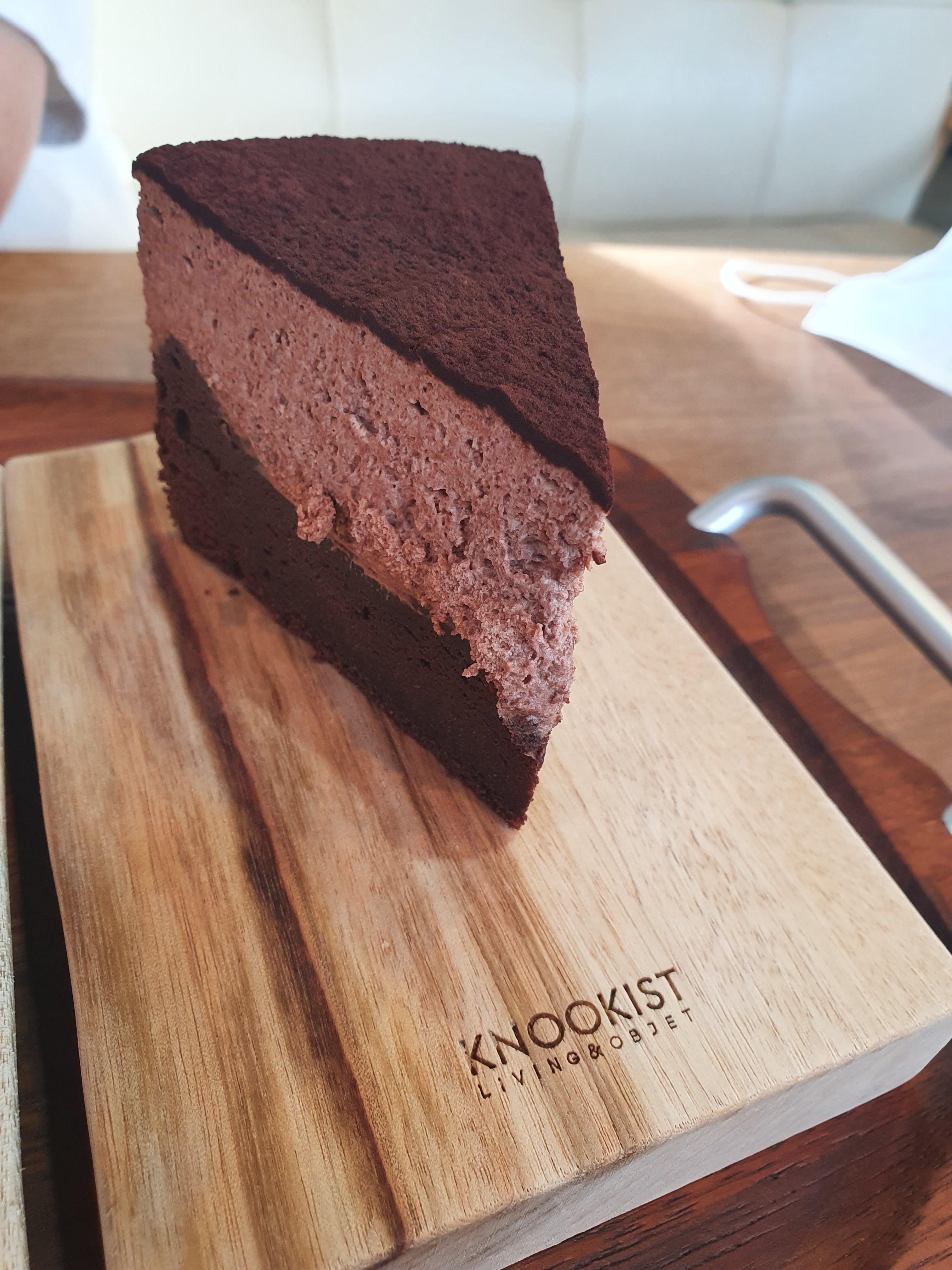 위엔 티라미슈케익처럼 엄청 부드럽고 아래 레이어는 꾸덕한 브라우니 같은 느낌이 드는 케익이였습니다.