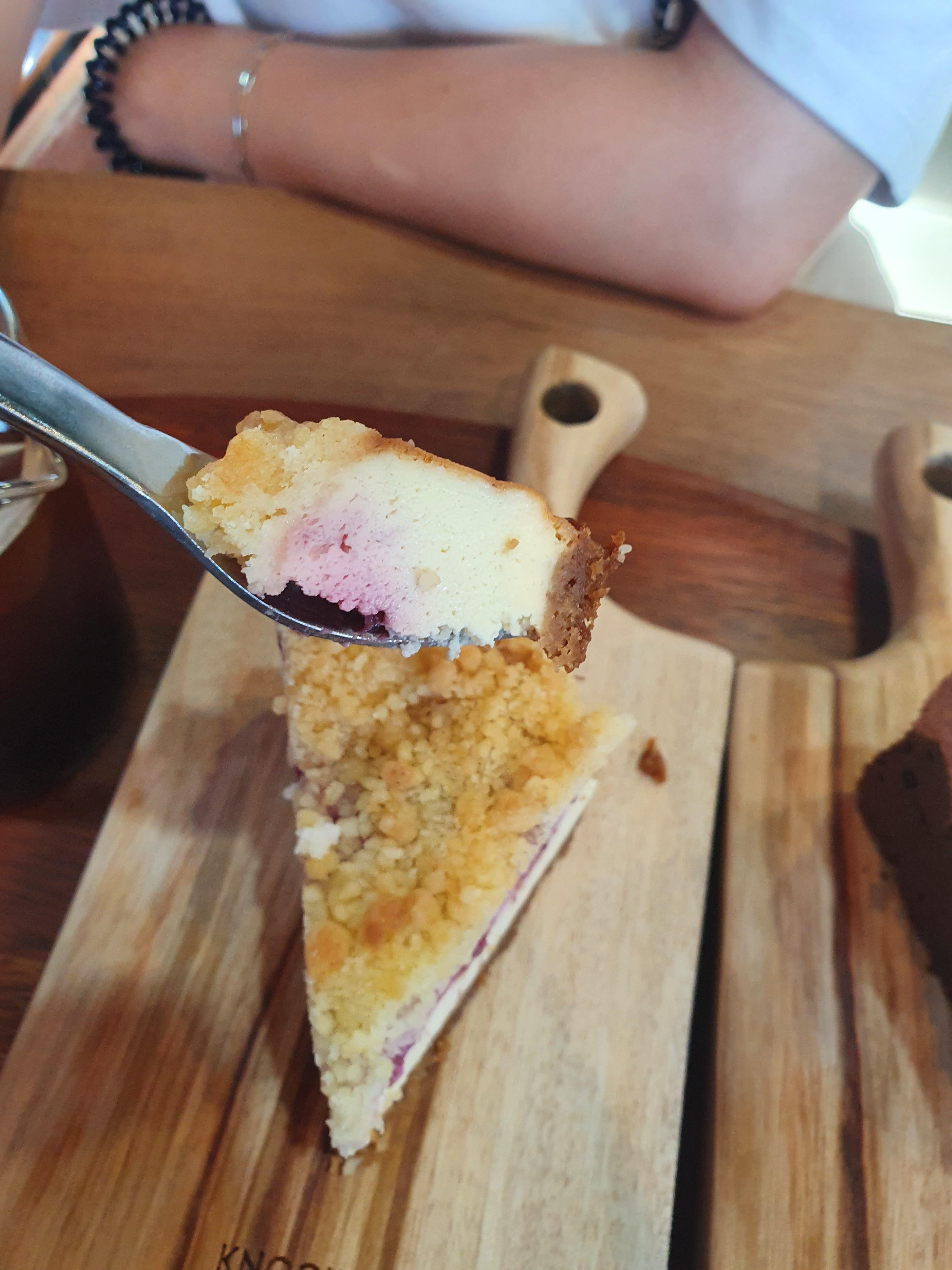 여기에 라지베리를 촘촘하게 넣어서 상큼한 맛이 드는 부드러운 치즈 케익같았습니다.