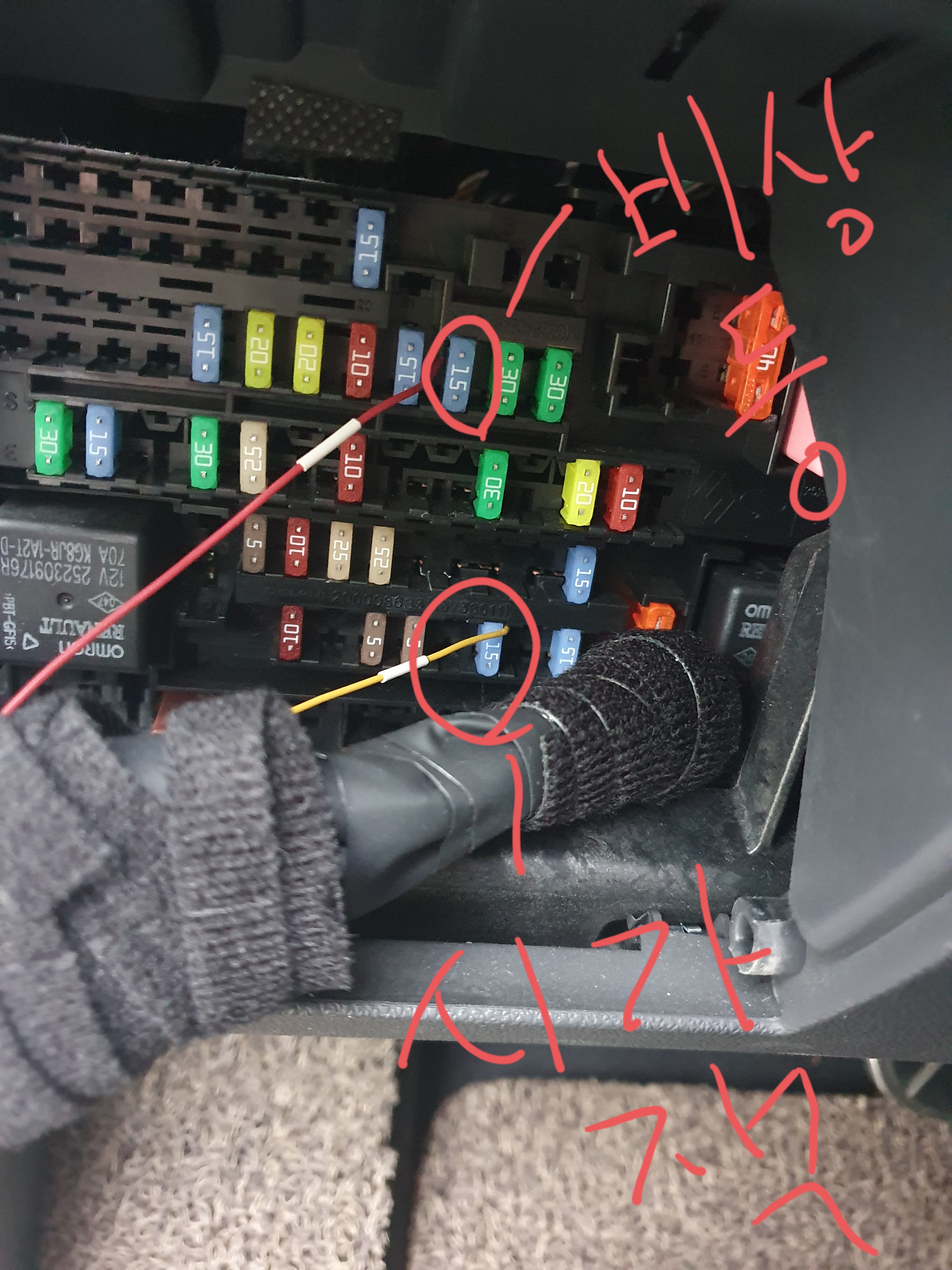 - 선에 연결해야하나... 전원선에 자체 퓨즈가 있기때문에..