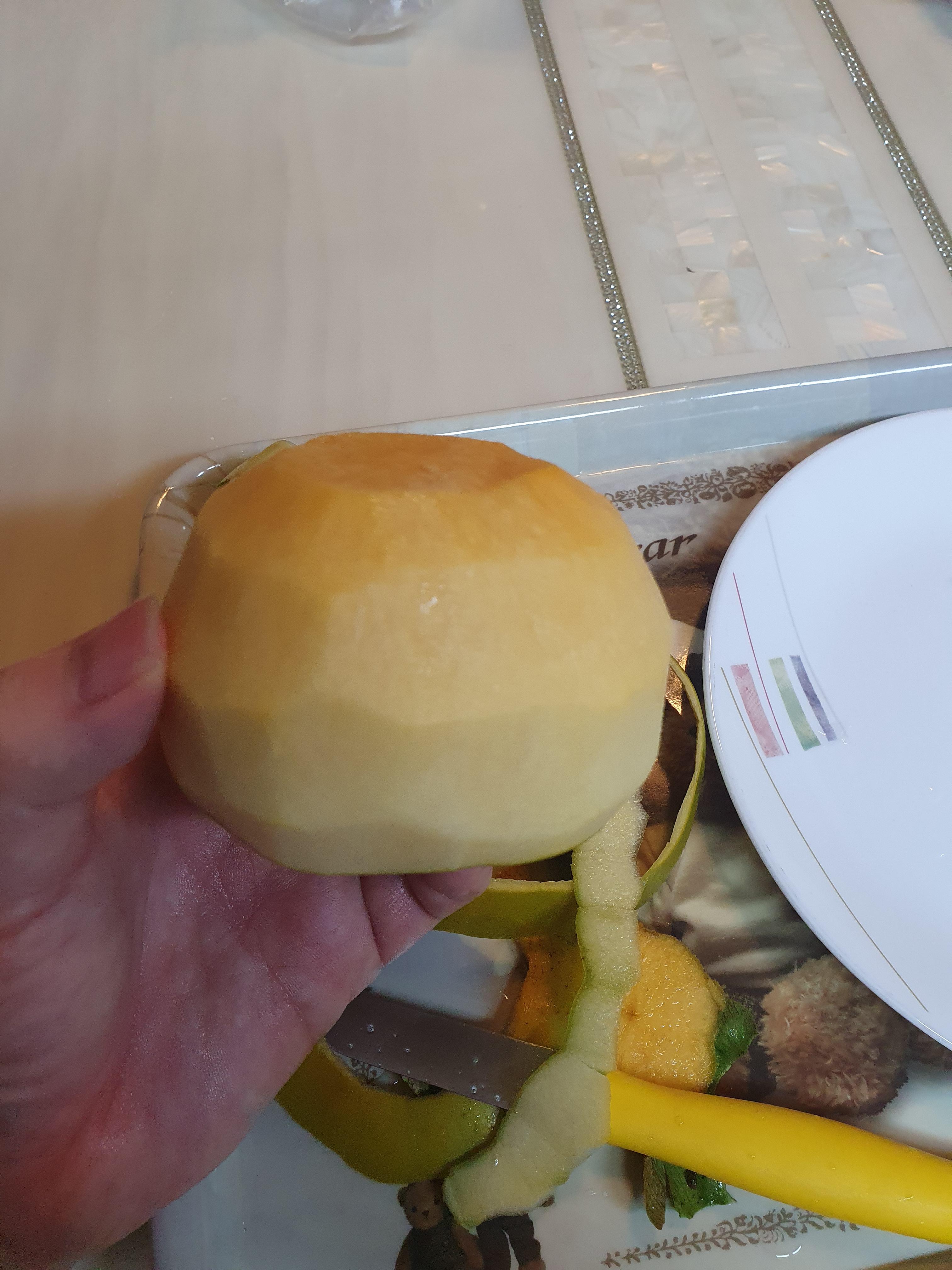 껍질도 얇게 잘 자를 수 있고 칼로 깎아 쓸 때는 장난감과 비슷한 느낌인데 감 자체가 큼직하니 껍질 가기는 편하네요 ㅎㅎ