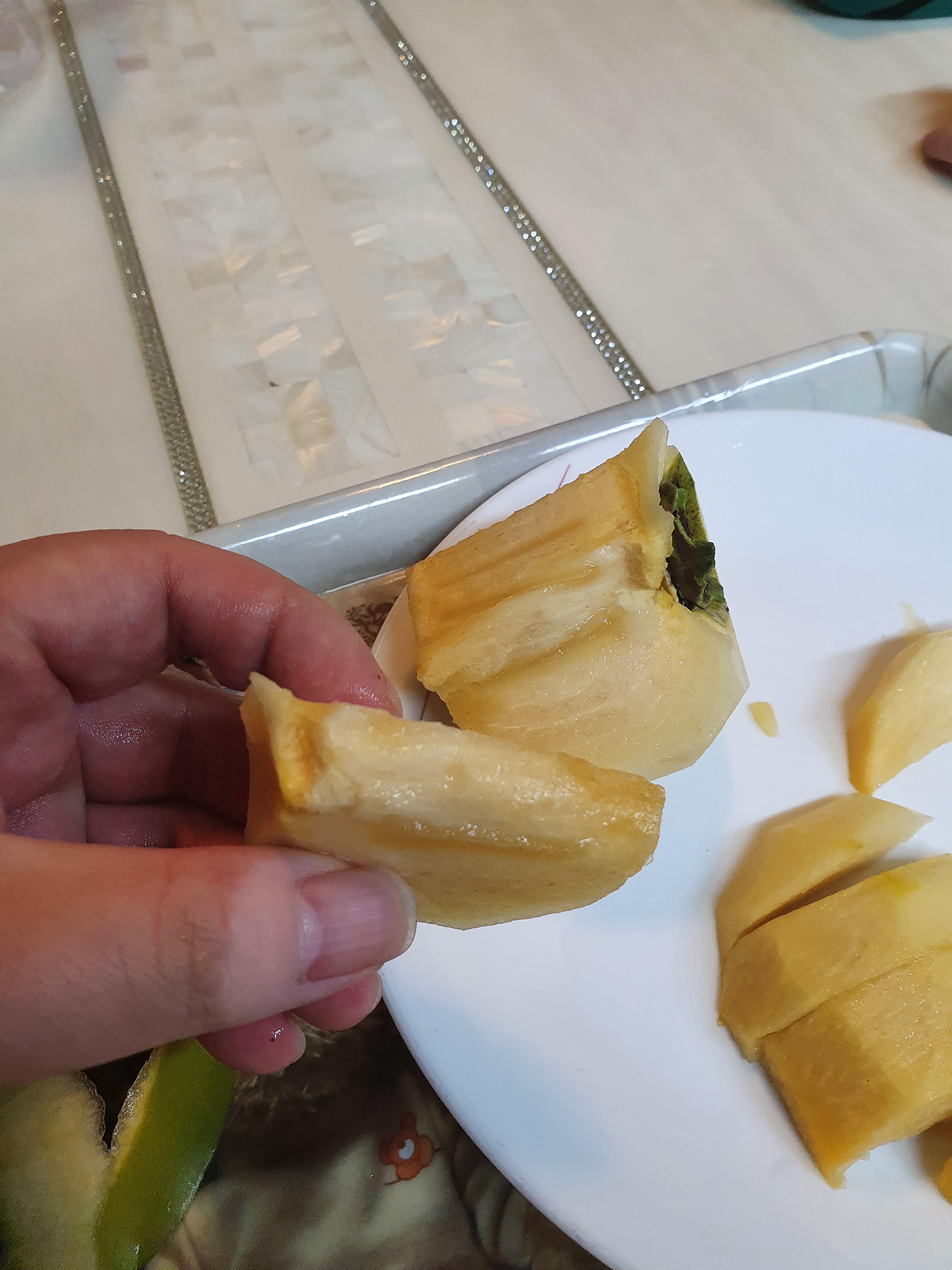 자 이제 한 개를 깠습니다 먹어볼게요!!