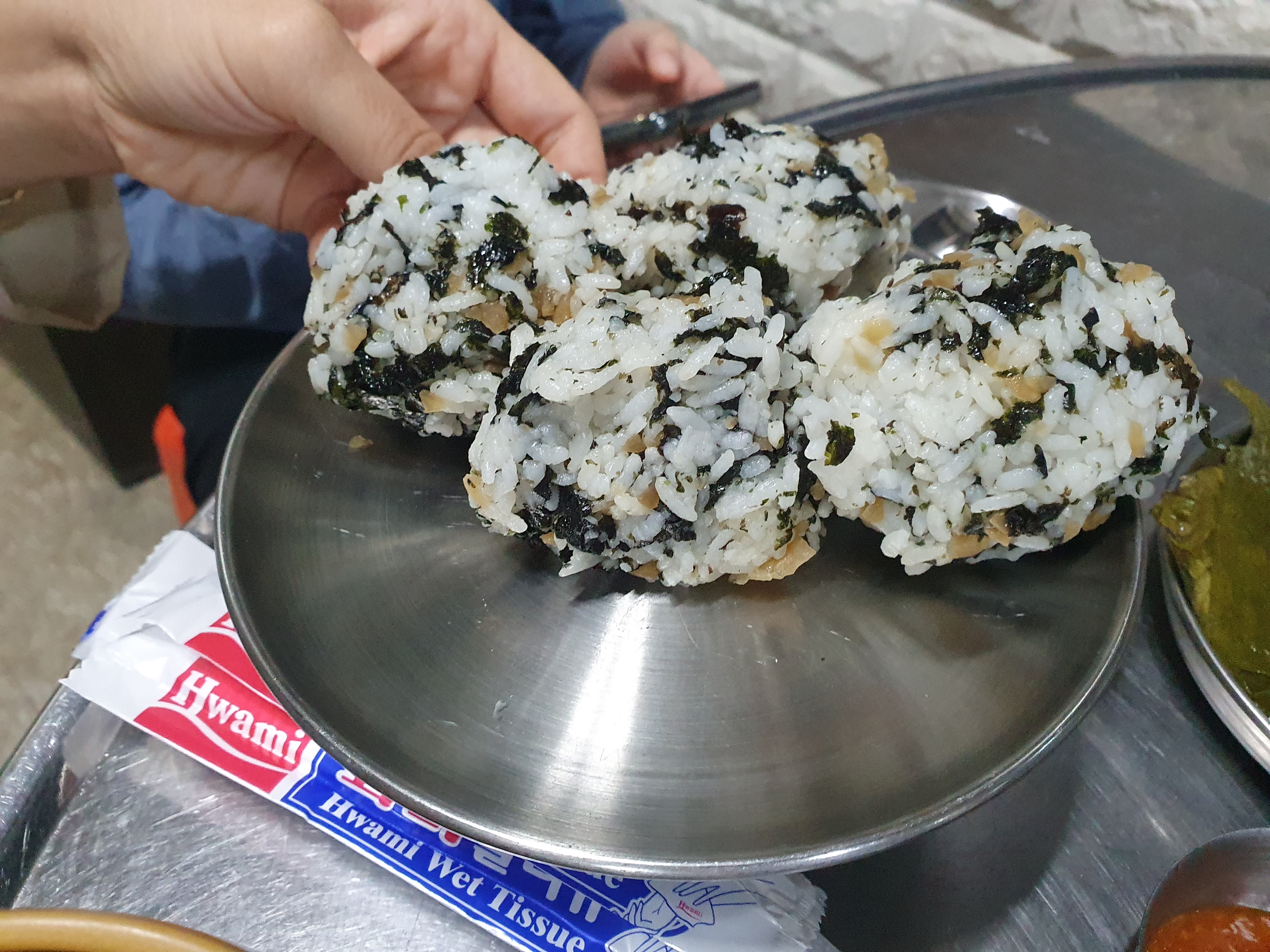 여긴 좋은게... 세트 메뉴를 시키면 꼭 이렇게 인원수에 맞게 주먹밥이 나오는데.. 술먹기전 하나 먹으면 속이 든든해 집니다.