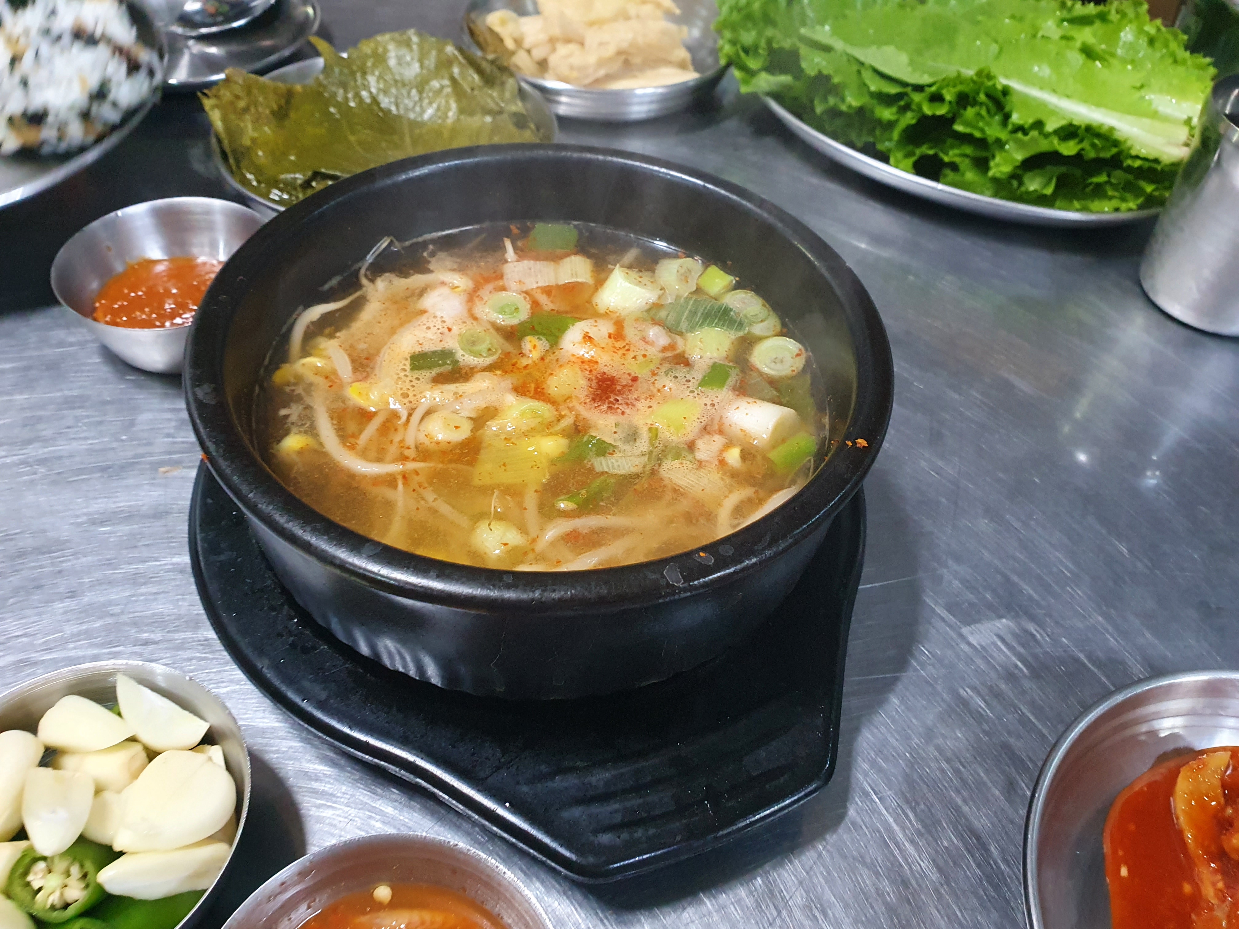 오자마자 기본 찬이 매콤 시원한 콩나물 해장국이랑